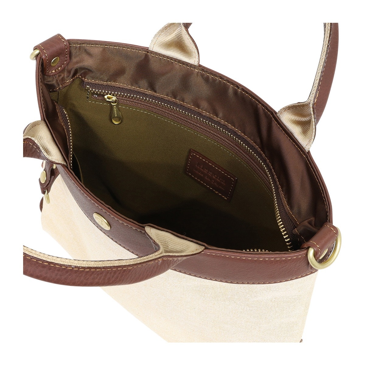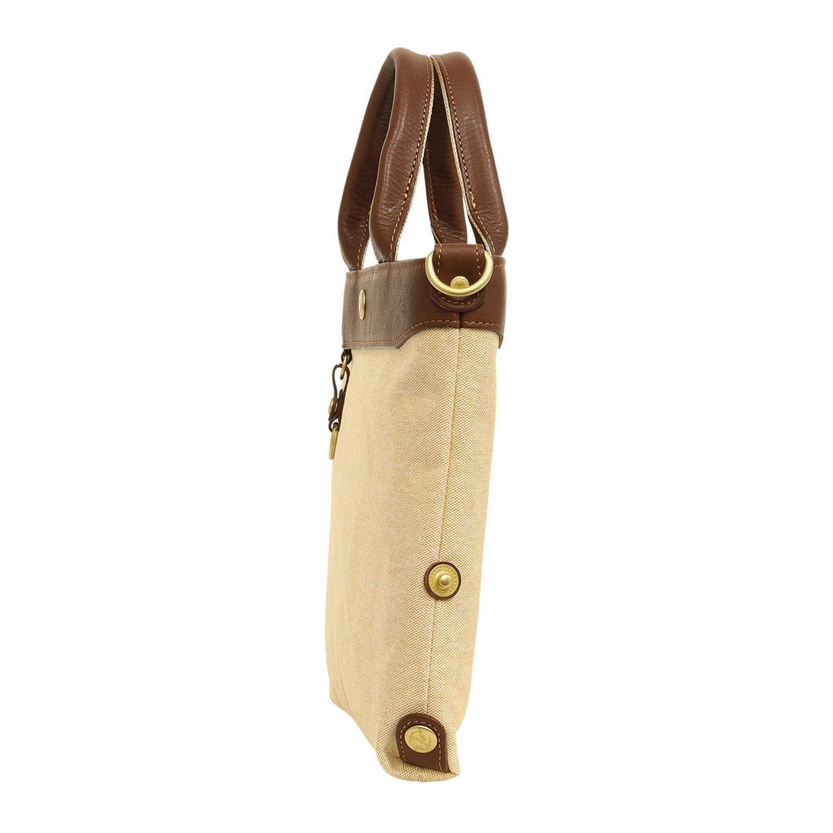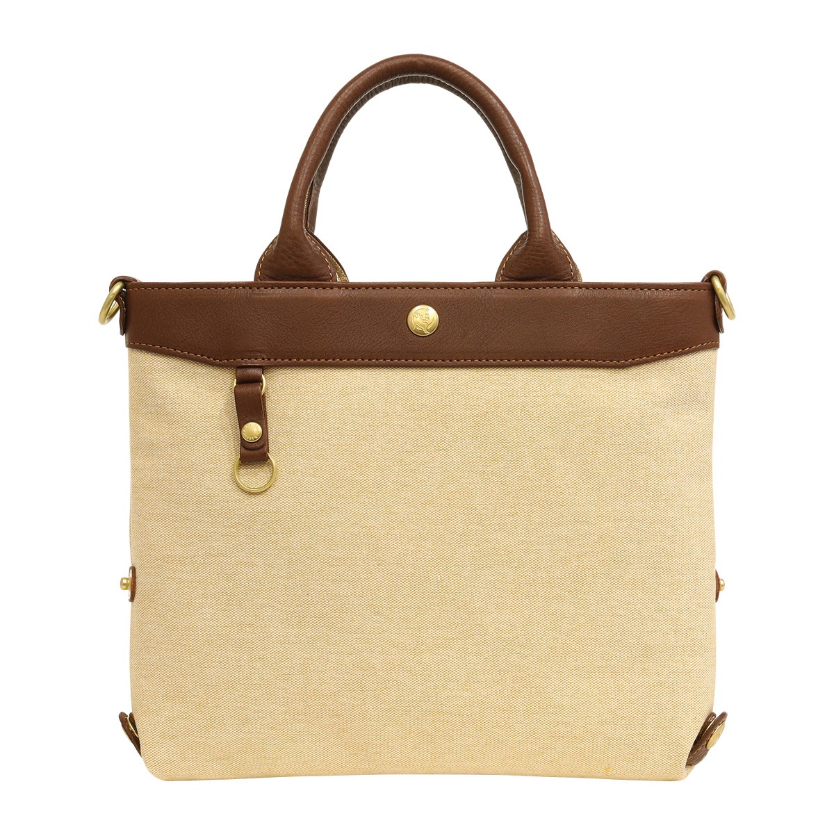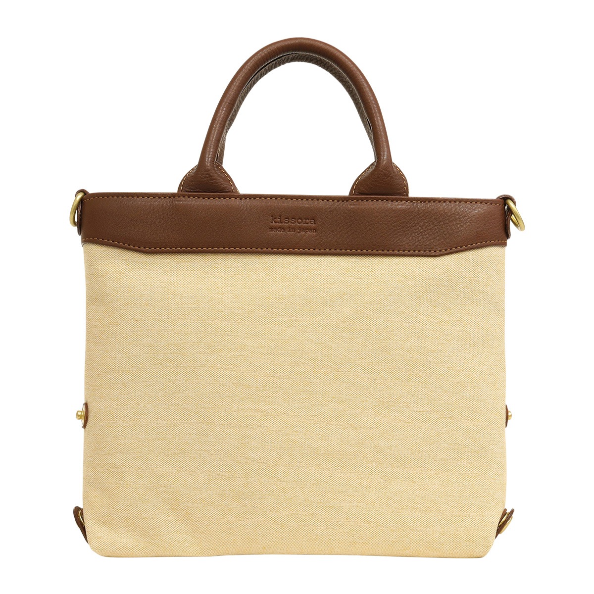 ビアンカコットンシャンブレー素材に牛革を付属したシリーズ。シャンブレーとは、先染めした色糸をタテ糸に、白い糸をヨコ糸に使用し、平織した生地のことで、布の表面に霜降りのようにポツポツと白糸が現れることで上品さを演出している素材です。
