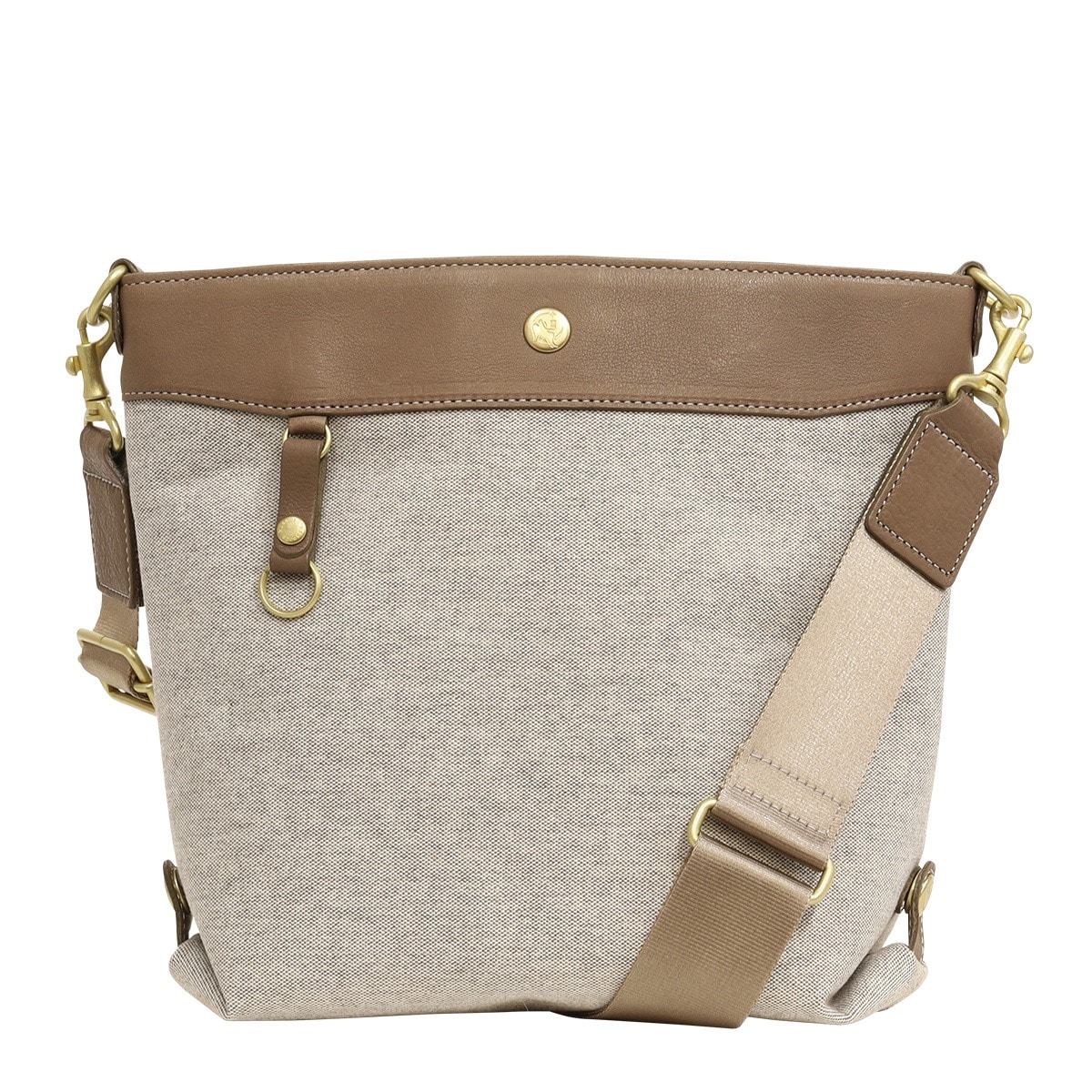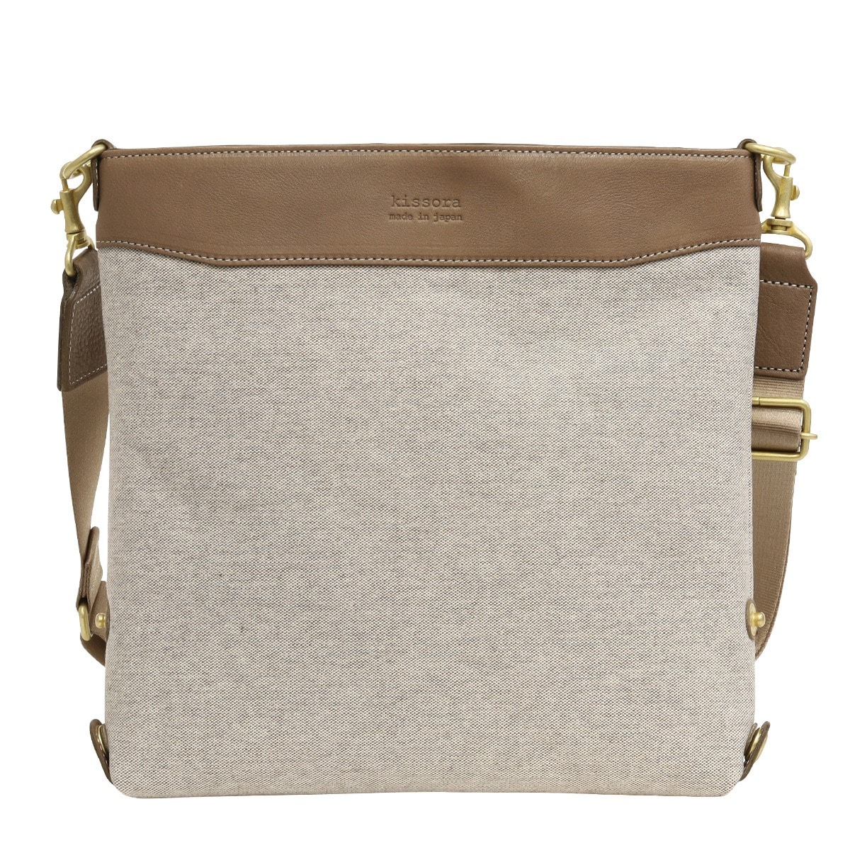 ビアンカコットンシャンブレー素材に牛革を付属したシリーズ。シャンブレーとは、先染めした色糸をタテ糸に、白い糸をヨコ糸に使用し、平織した生地のことで、布の表面に霜降りのようにポツポツと白糸が現れることで上品さを演出している素材です。