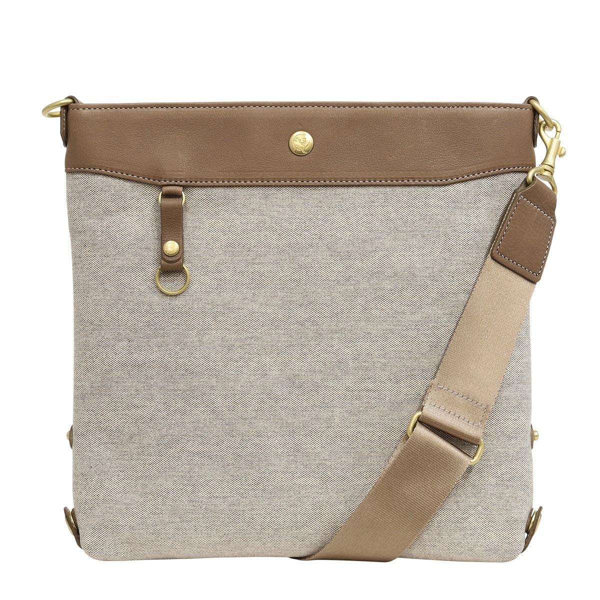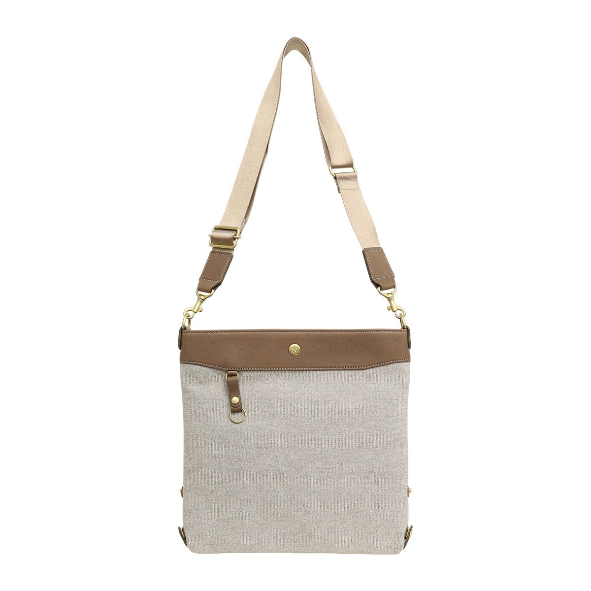 コットンシャンブレー素材に牛革を付属したシリーズ。シャンブレーとは、先染めした色糸をタテ糸に、白い糸をヨコ糸に使用し、平織した生地のことで、布の表面に霜降りのようにポツポツと白糸が現れることで上品さを演出している素材です。