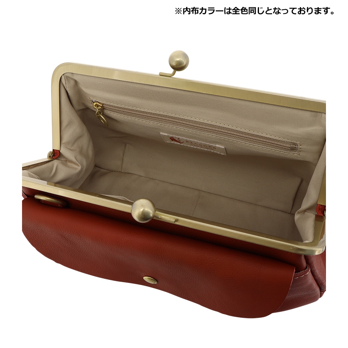 仕様:がま口式開閉内側:ファスナーポケット×1フリーポケット×2前面:マグネットボタンポケット×1