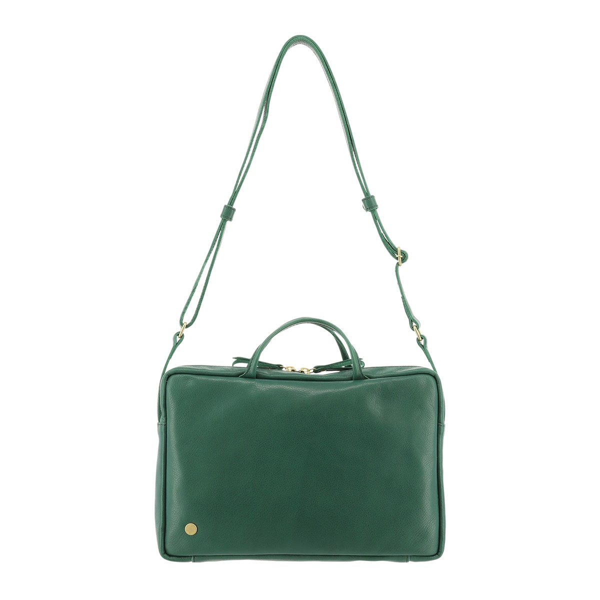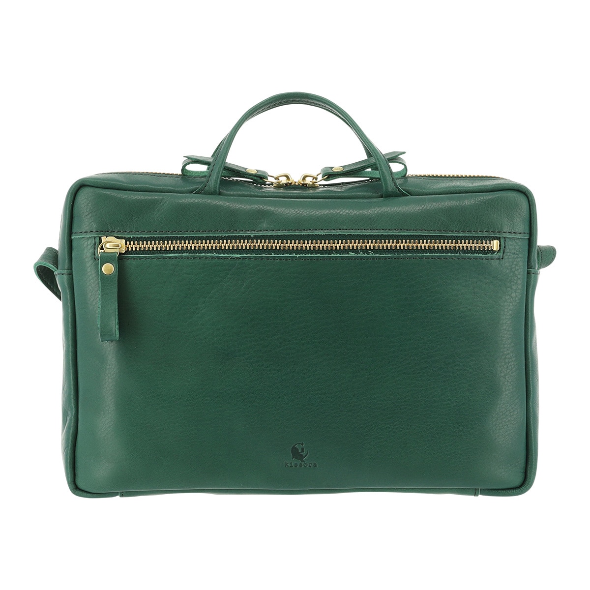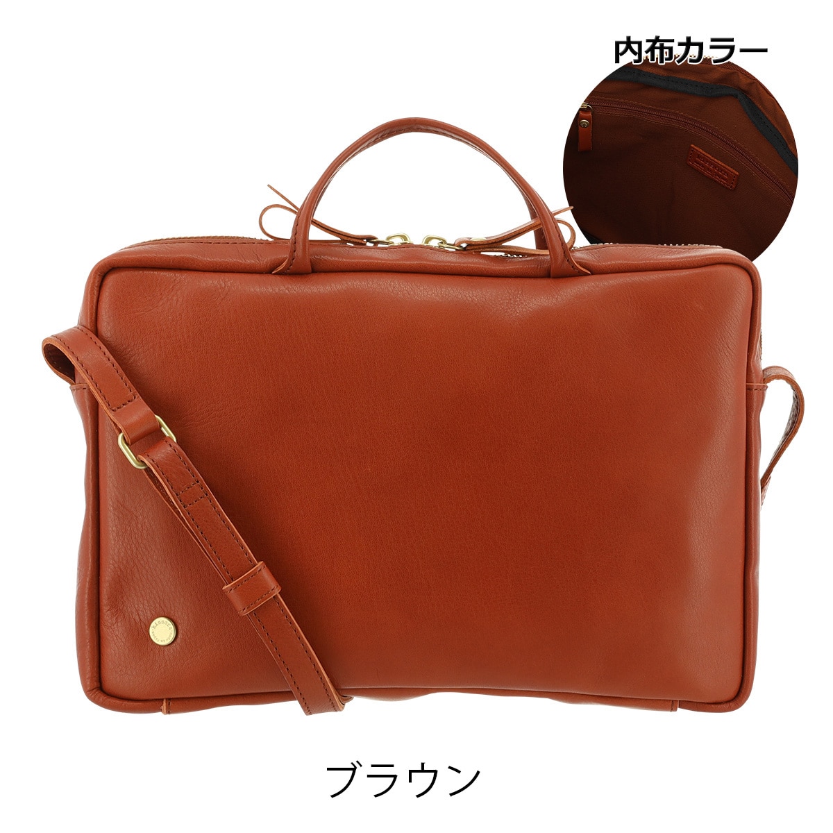 スクエアなデザインとワンポイントのブローチでクラシック調に仕上がっています。コンビネーション鞣しによって作られた革で、二次鞣しの段階で多くのタンニンを使用することで0.5mm程厚みが増し、ふっくら柔らかい仕上がりになっており、とにかく軽いシリーズです。タンニンを多く使用しているため、革らしい「鳴き」があり、表面加工を殆どしていない素上げの革なので、革本来の風合いと経年変化を楽しめます。