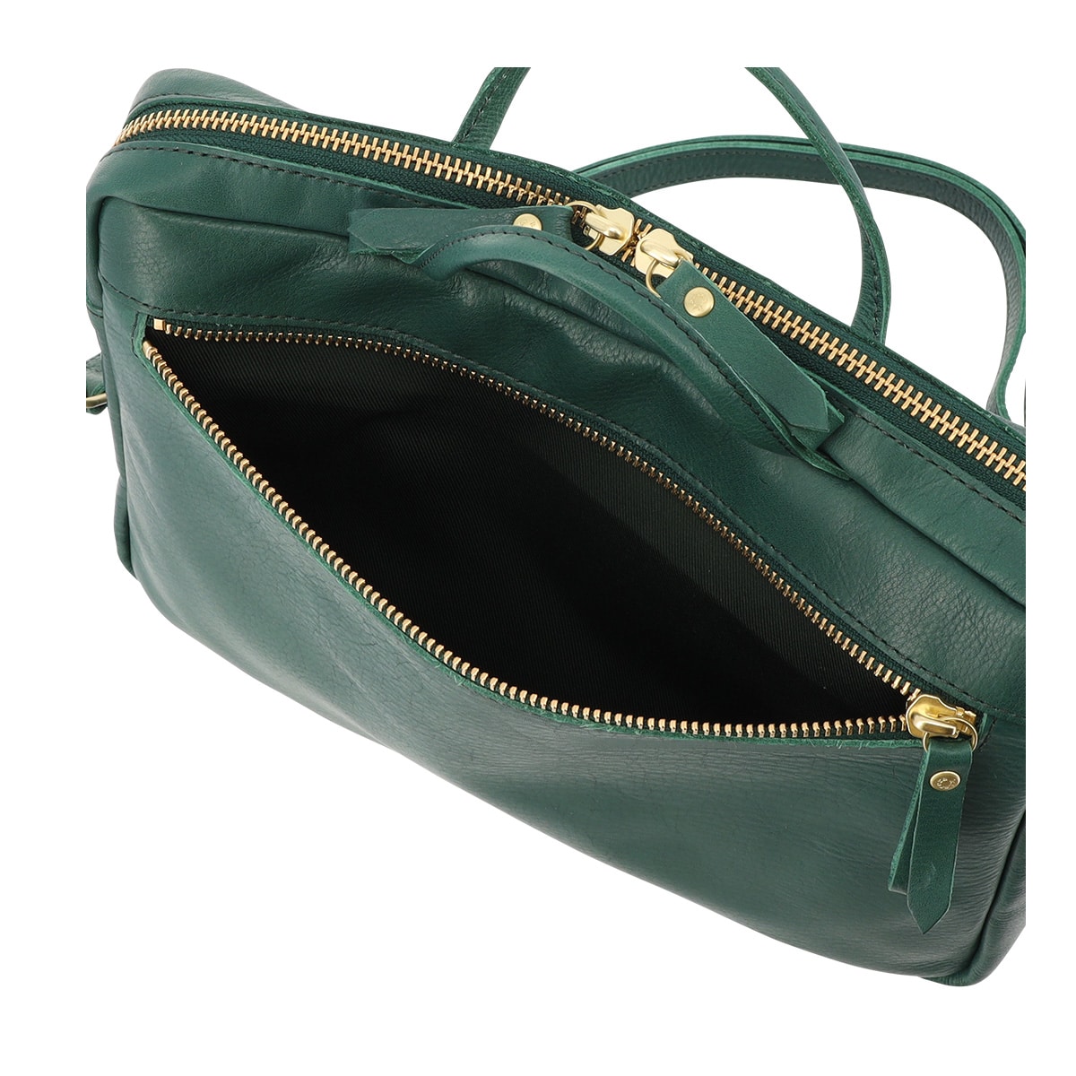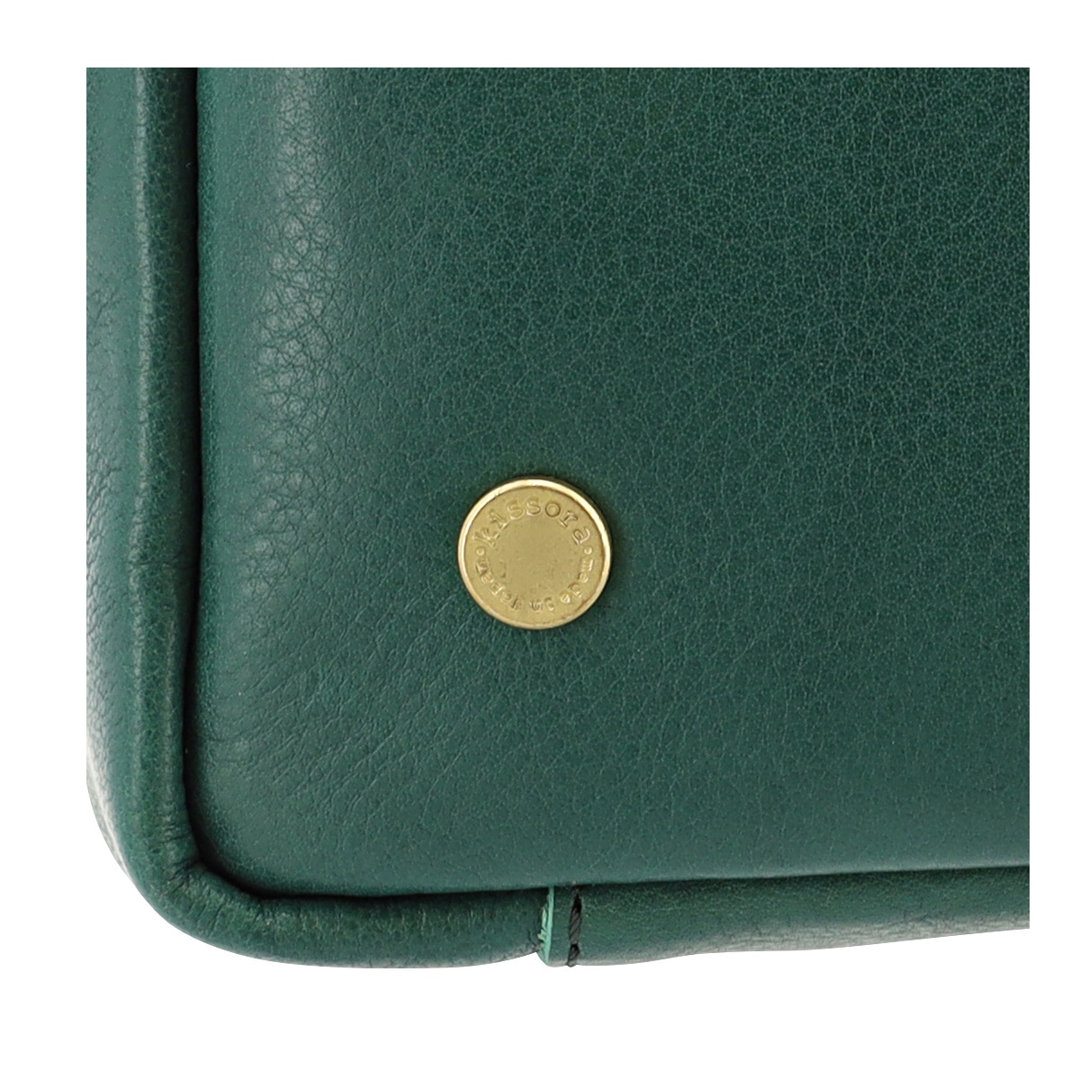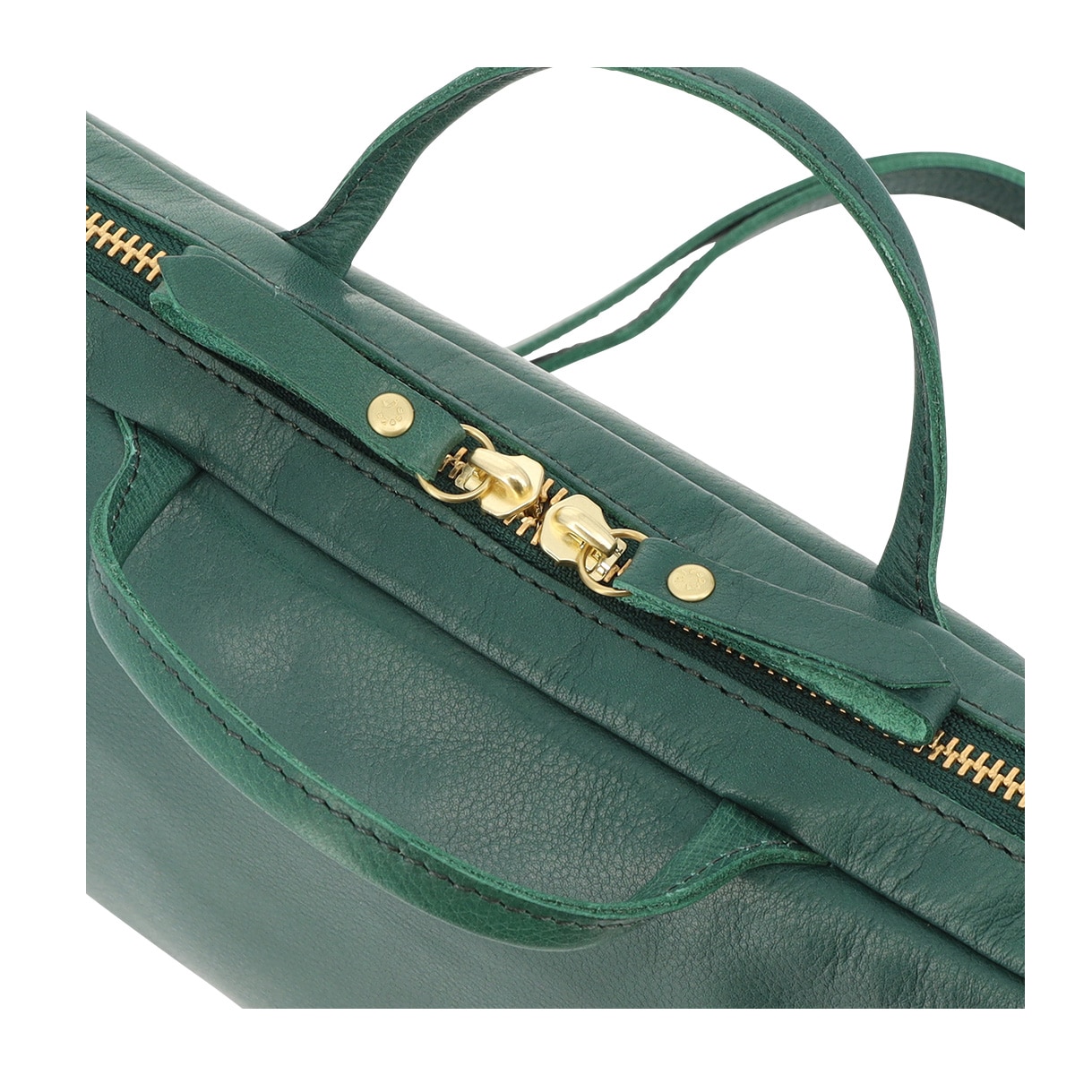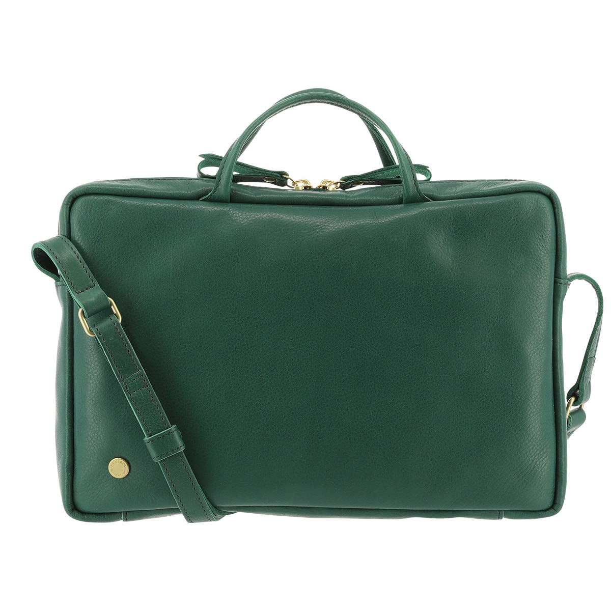 スクエアなデザインとワンポイントのブローチでクラシック調に仕上がっています。コンビネーション鞣しによって作られた革で、二次鞣しの段階で多くのタンニンを使用することで0.5mm程厚みが増し、ふっくら柔らかい仕上がりになっており、とにかく軽いシリーズです。タンニンを多く使用しているため、革らしい「鳴き」があり、表面加工を殆どしていない素上げの革なので、革本来の風合いと経年変化を楽しめます。