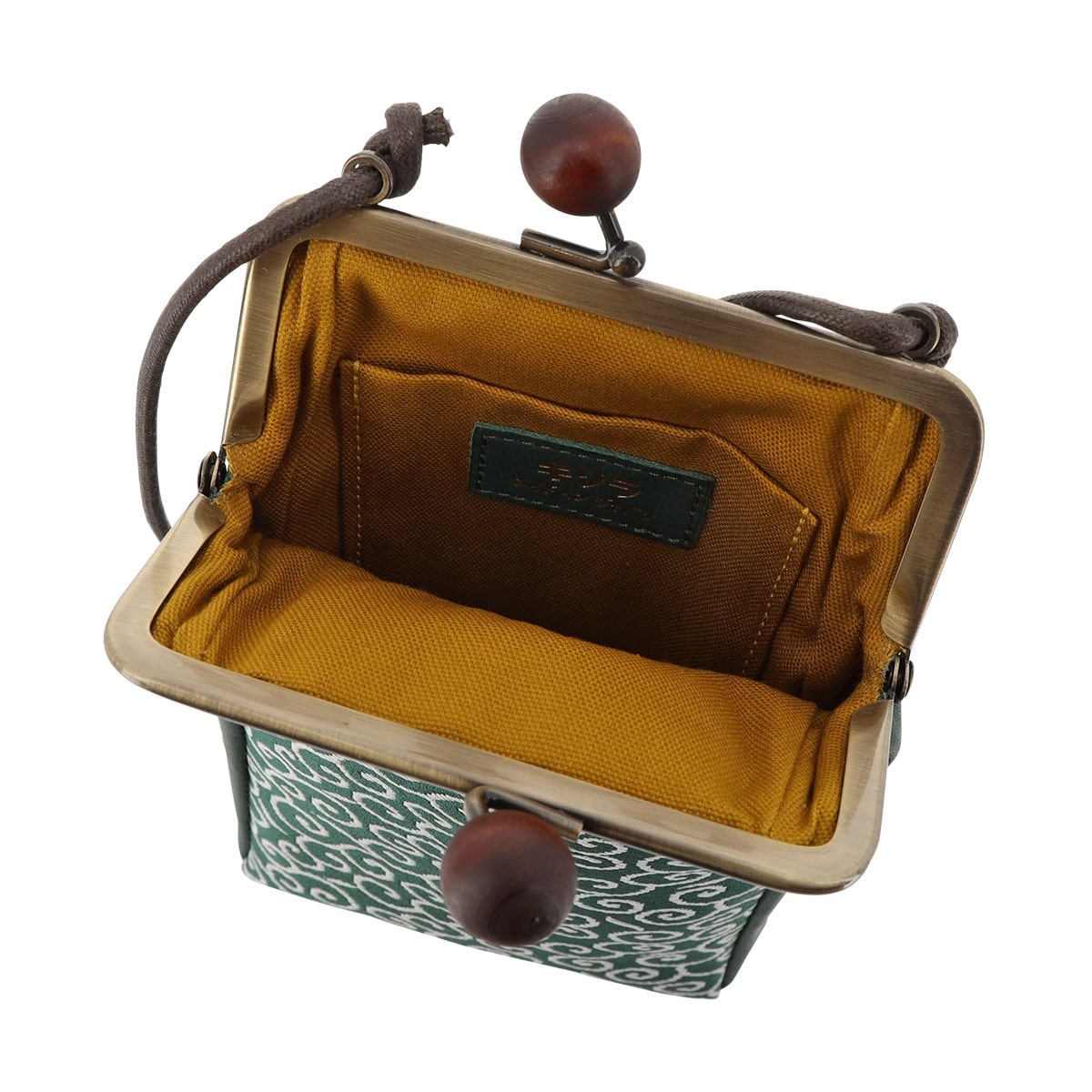 「京織(きょうおり)」とは、京都西陣織の伝統と技術を引き継いだ、織元ならではの枠にとらわれない自由な発想で織られた織物です。このシリーズは「和」「日本」をイメージしやすいよう、がま口を使用し、生地の柄も縁起が良いとされる「吉祥柄」を取り入れています。