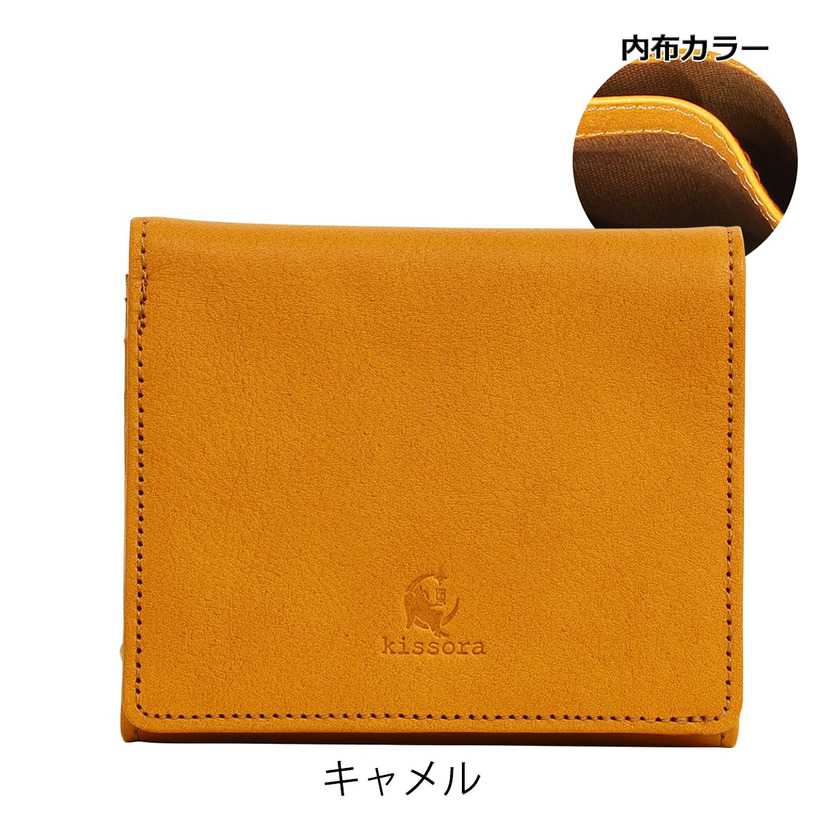 ベリッシマ染料仕上げでナチュラルに仕上げた国産牛革に、重厚で高級感のあるオリジナルがま口を合わせたシリーズ。さりげなくkissoraのロゴを配したオリジナルのがま口がアクセントになっています。開きの大きい口金を採用しているため小銭の出し入れが非常にし易く、定番のウォッシャブルナッパの機能性をベースにカードやお札などの収納も可能な限り多く配し、機能面が非常に充実したシリーズです。