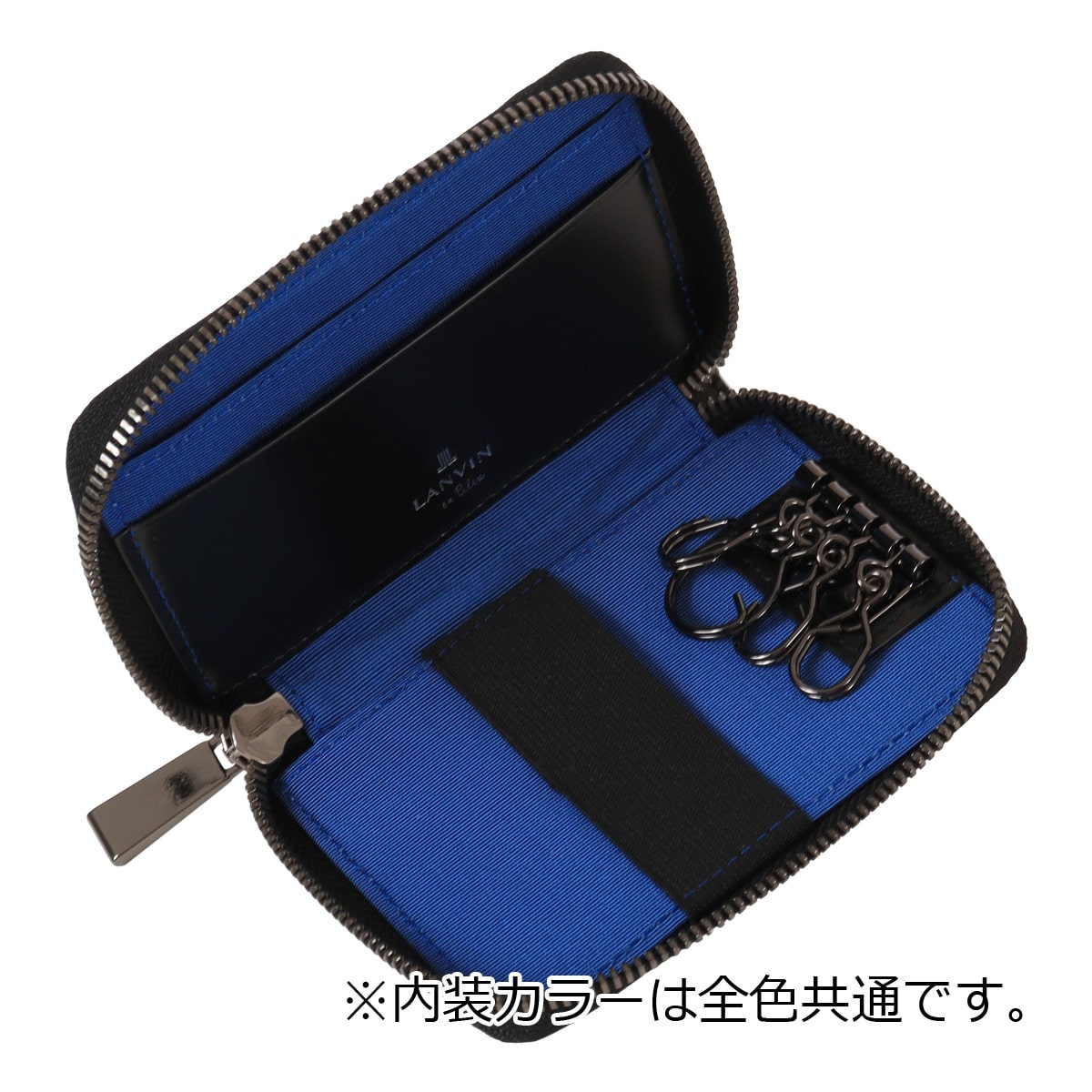 ランバンオンブルーの文字を型押しで大きく表現した、ラウンドファスナー型キーケース。ブランドのシンボルマークである「JL」ロゴをグラデーションで用いた、シンプルでもエッジーな革小物です。
