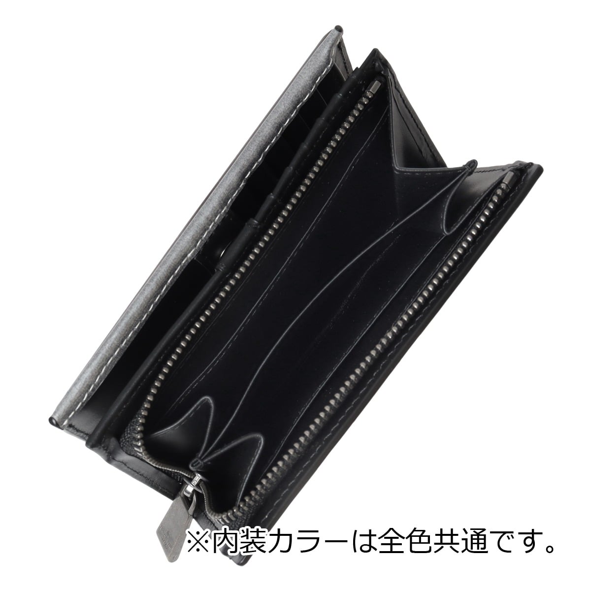 仕様:スナップボタン式開閉内側:札入れ×2カードポケット×10フリーポケット×4背面:L字ファスナー式小銭入れ×1(内側:フリーポケット×2、仕切りあり)