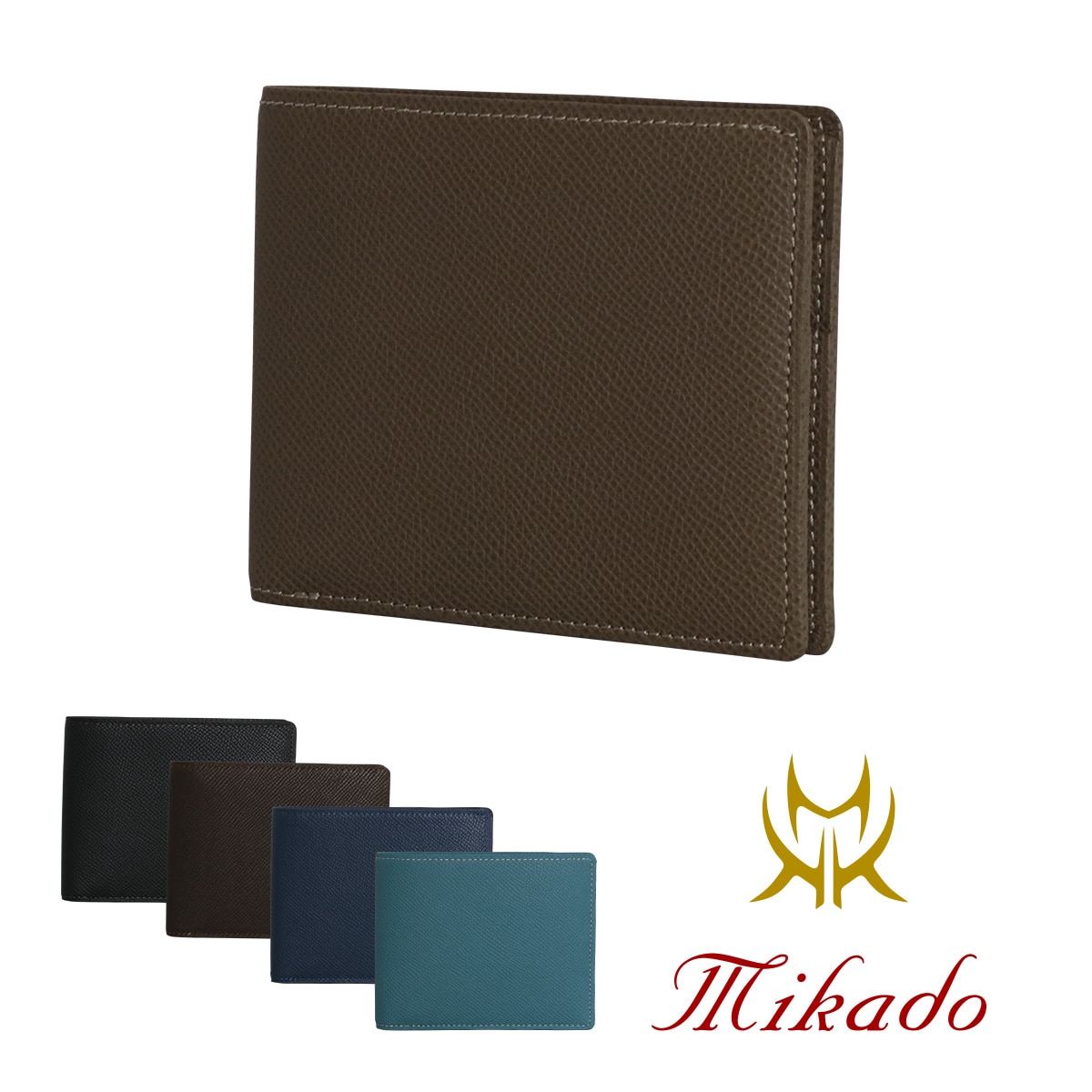 ドイツの「ワインハイム社」のワープロラックスを使用。表面に型押し加工を施したブラックーム鞣しのカーフレザー(生後6ヶ月以内の仔牛)でソフトな感触でありながらも独特のコシがある他、型押し加工により傷が付きにくい上、発色が良く、色落ちがしにくいことが大きな特徴です。ミカドとは「高貴なもの」という意味に由来します。国内外の厳選した上質な素材を日本の伝統と卓越された技を持つ職人が丹念に仕上げています。それを「高貴なもの」とし、真摯にモノ作りをしています。日本の「匠」「技」「極」をコンセプトにシンプルながら上質なレザー製品を提供してまいります。
