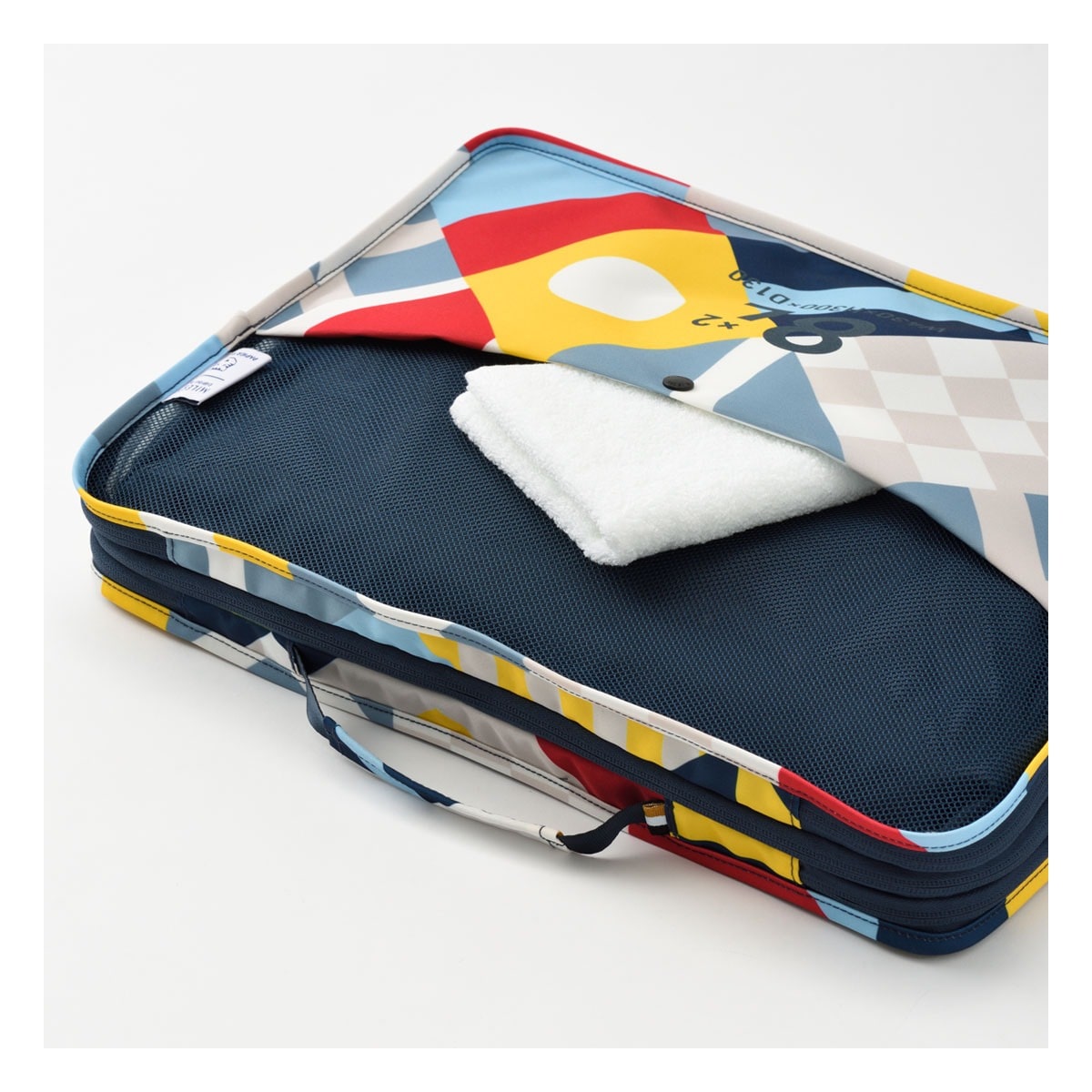 MILESTO×PAPIERTIGREコラボ 2つのポケットでしっかり整理、圧縮機能ですっきり収納できるパッキングオーガナイザー。