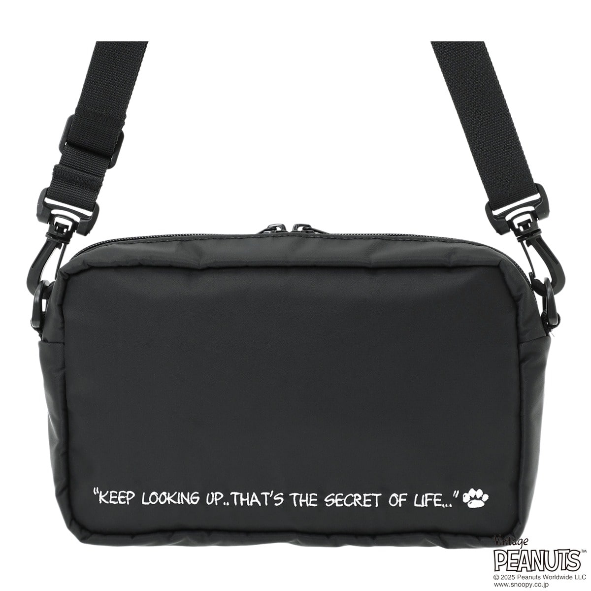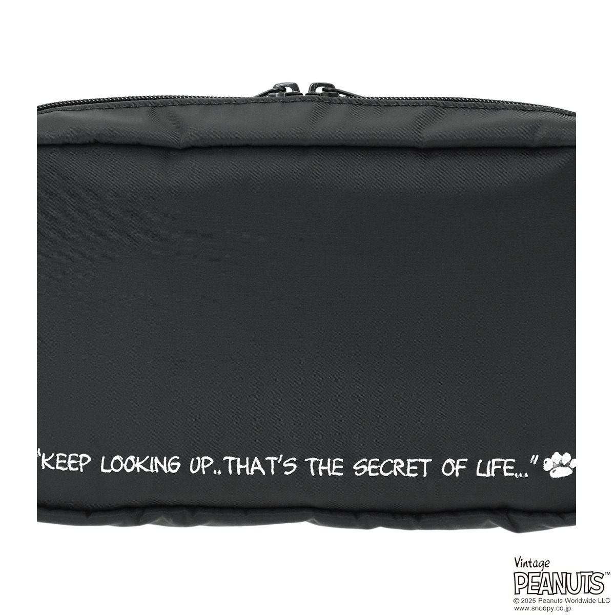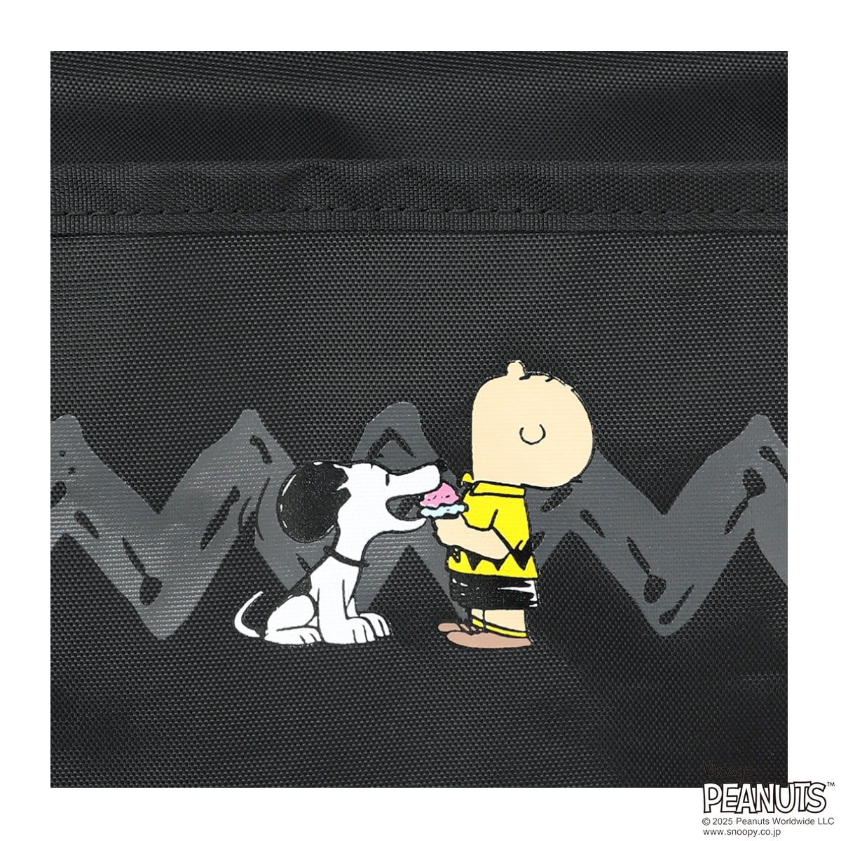 今作はチャーリー・ブラウンとスヌーピーの 2 ショットを全デザインに起用し、バッグの外側と内側でストーリーが展開する、これまでにないデザインになっています。コミック内で登場するセリフをピックアップし、スヌーピーの足形も添えて、サイドにワンポイントアレンジしました。大人っぽくもエッジの効いた大注目のコレクションです。