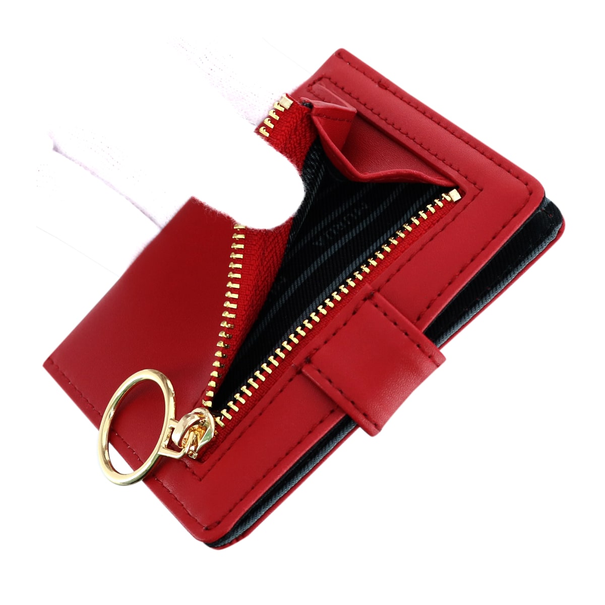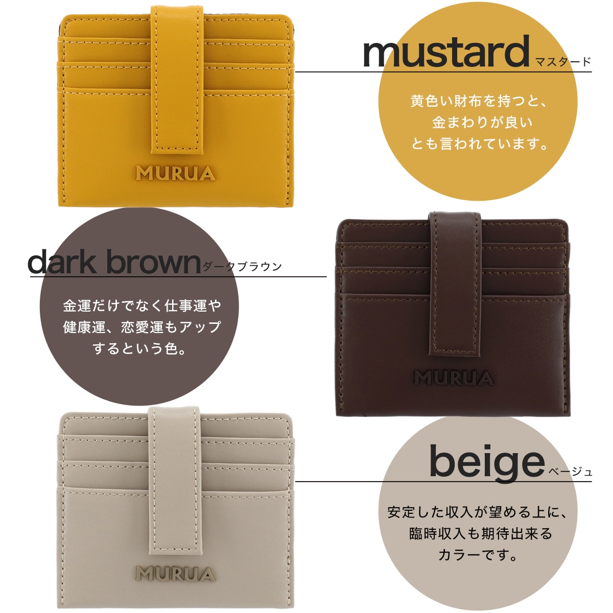 仕様:スナップボタン式開閉内側:札はさみ×1前面:カードポケット×3背面:ファスナー式小銭入れ×1