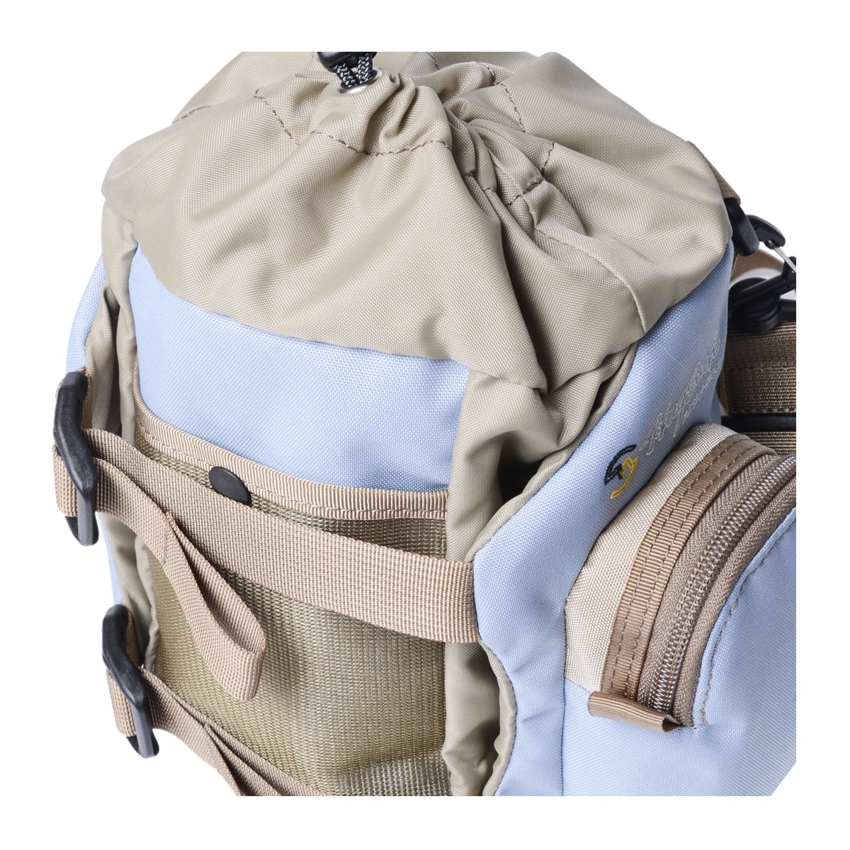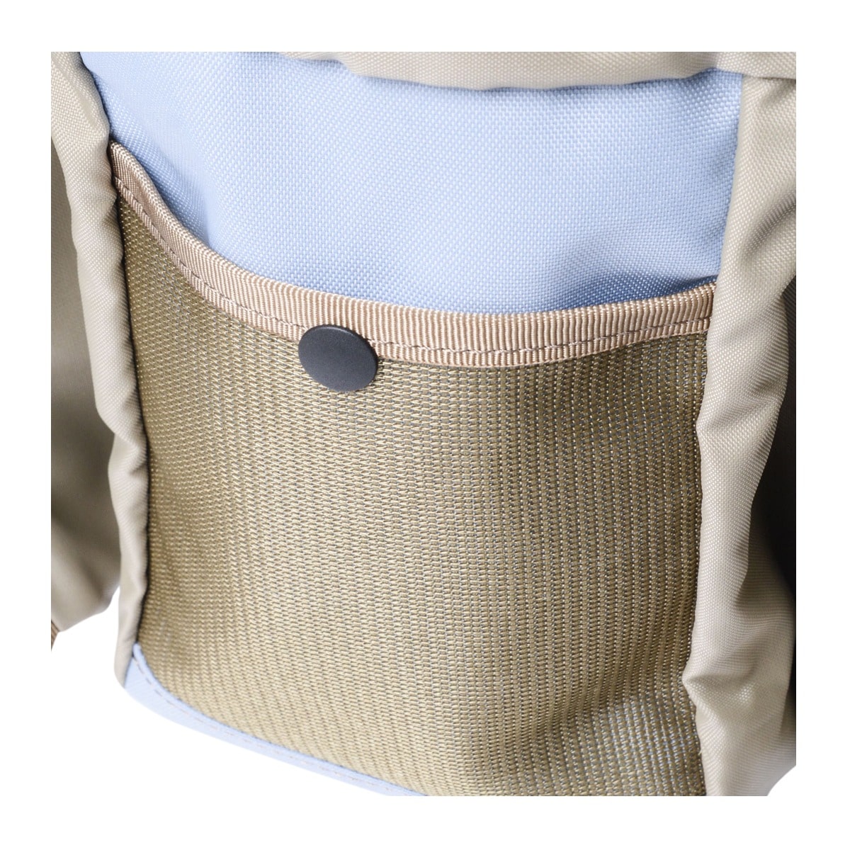 古着のアウトドアザックからインスピレーションを得た機能性とカラーリングをタウンユースに落とし込んだシリーズ。タブレットをはじめとした電子機器を安心して持ち運べる、芯材による荷物を外部の衝撃から守ってくれる保護構造が特徴です。本体の生地はオーソドックスな織り目の600d リサイクルポリエステルオックスRENUR と420d ナイロンオックスPVC コーティングのコンビネーションで天マチにあたる部分にPVC コーティングをした420d ナイロンオックスを配して防水性を高めています。