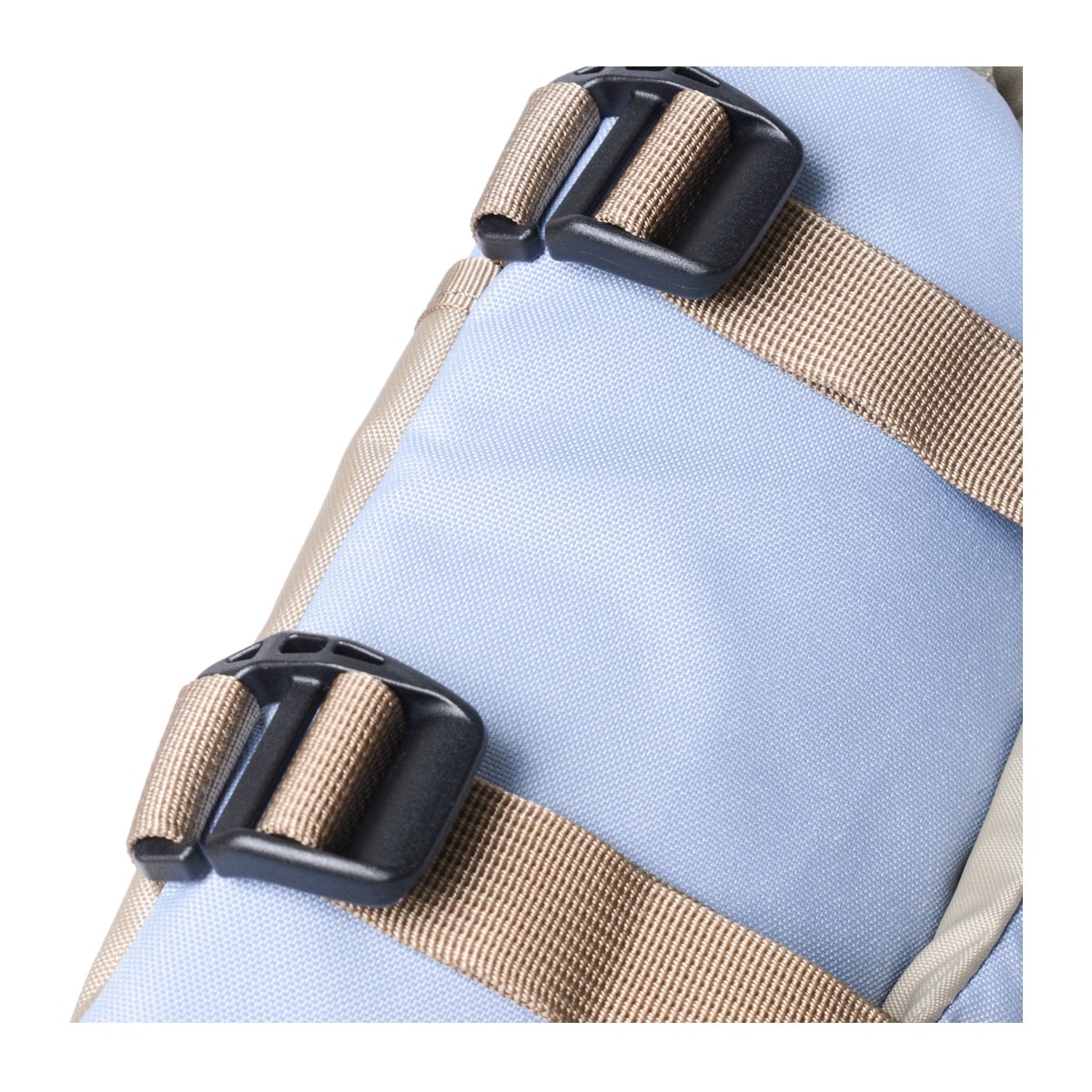 本体の生地はオーソドックスな織り目の600d リサイクルポリエステルオックスRENUR と420d ナイロンオックスPVC コーティングのコンビネーションで天マチにあたる部分にPVC コーティングをした420d ナイロンオックスを配して防水性を高めています。