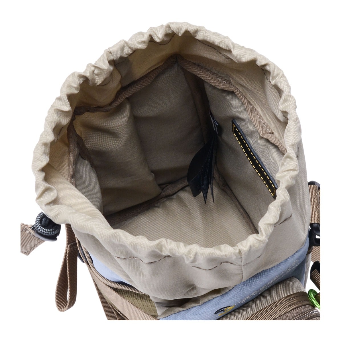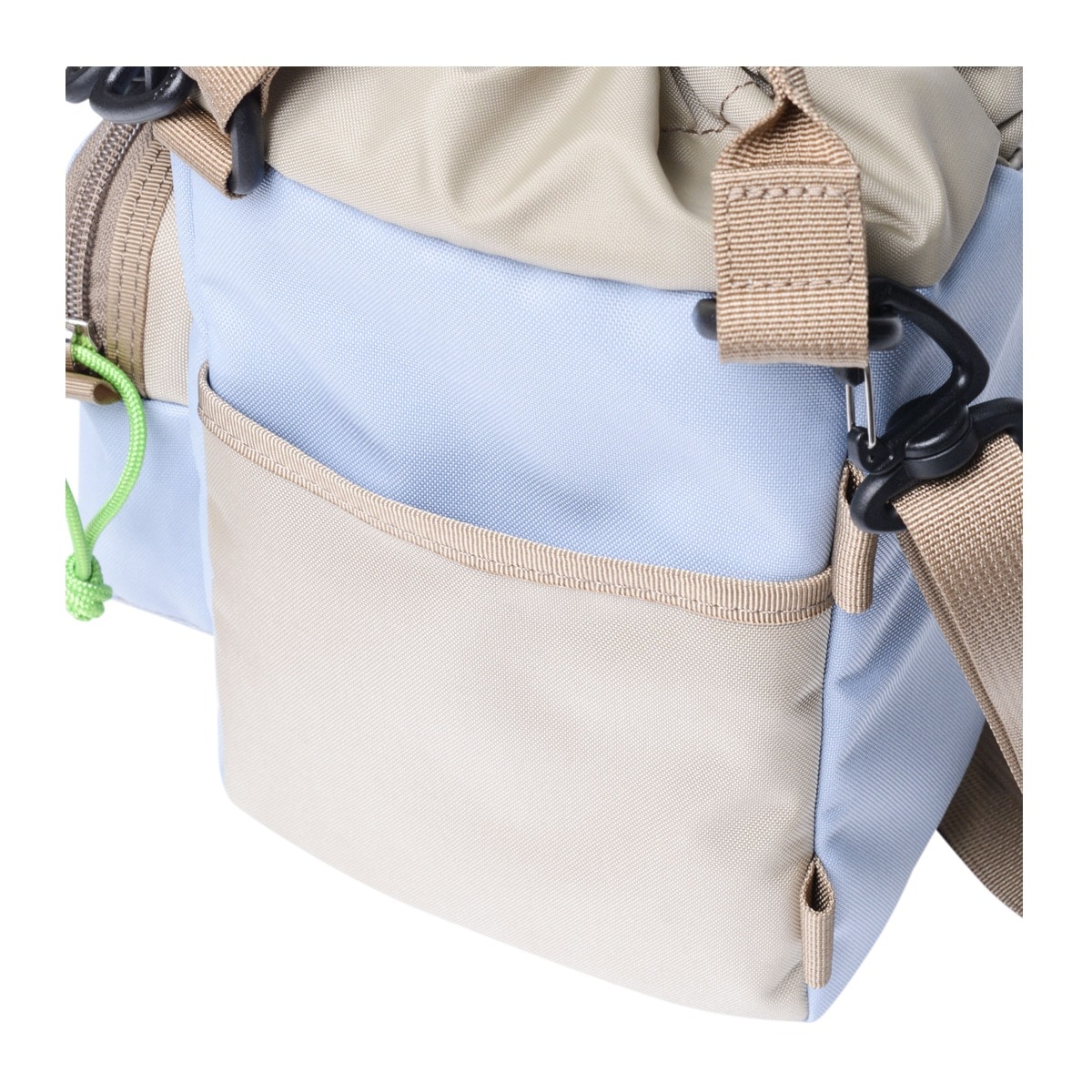仕様:ドローコード式開閉前面:ファスナーポケット(内側:フリーポケット×1)×1側面:フリーポケット×1スナップボタン式メッシュフリーポケット×1