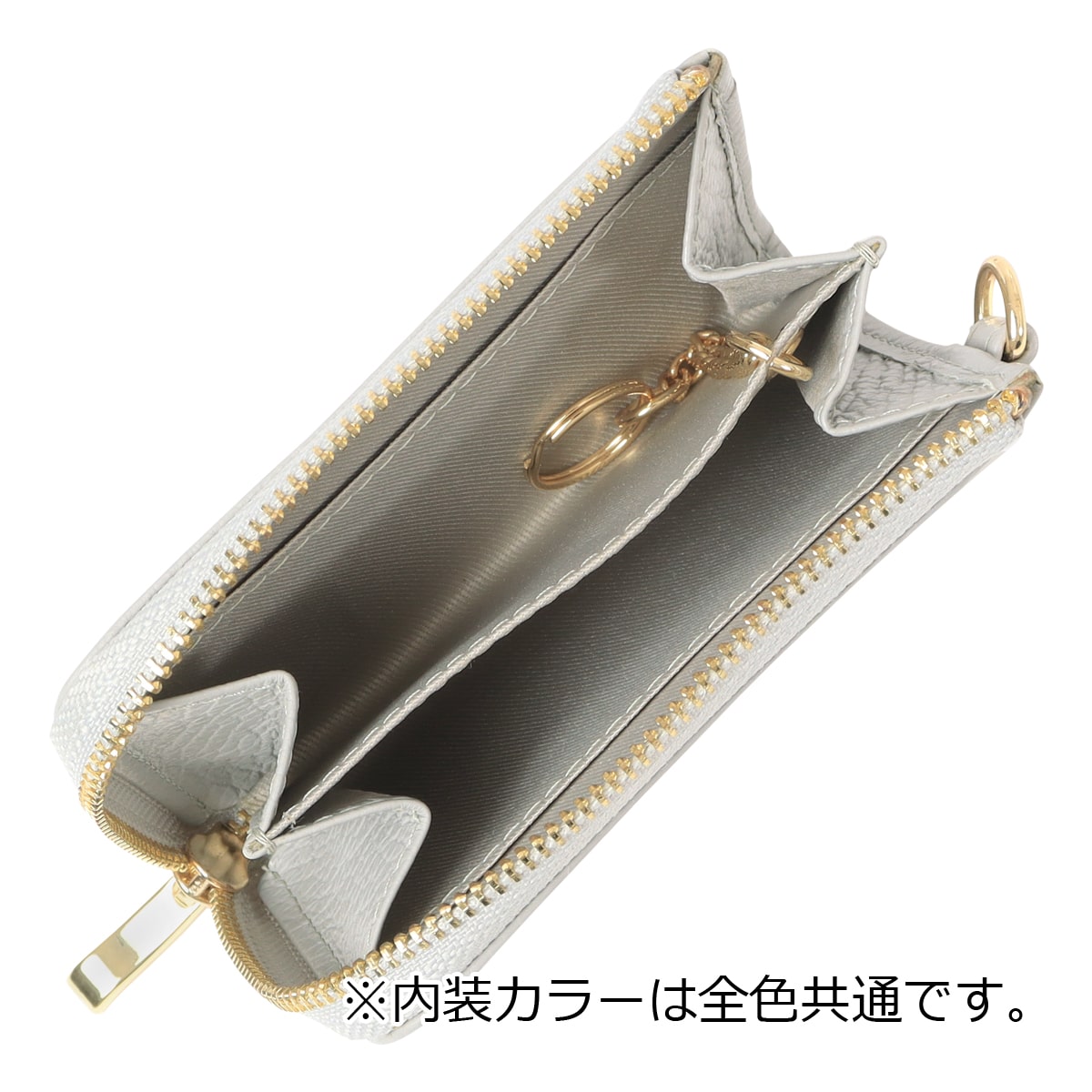 仕様:L字ファスナー式開閉内側:小銭入れ×2フリーポケット×2チェーン付きキーリング×1背面:パスポケット×1前面:フリーポケット×1