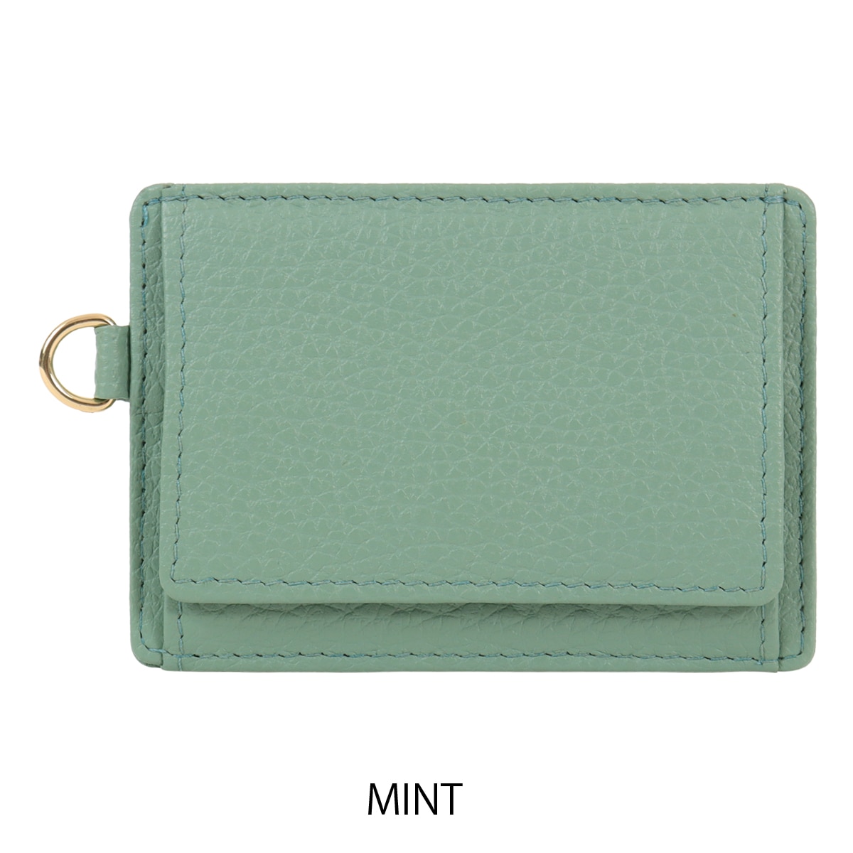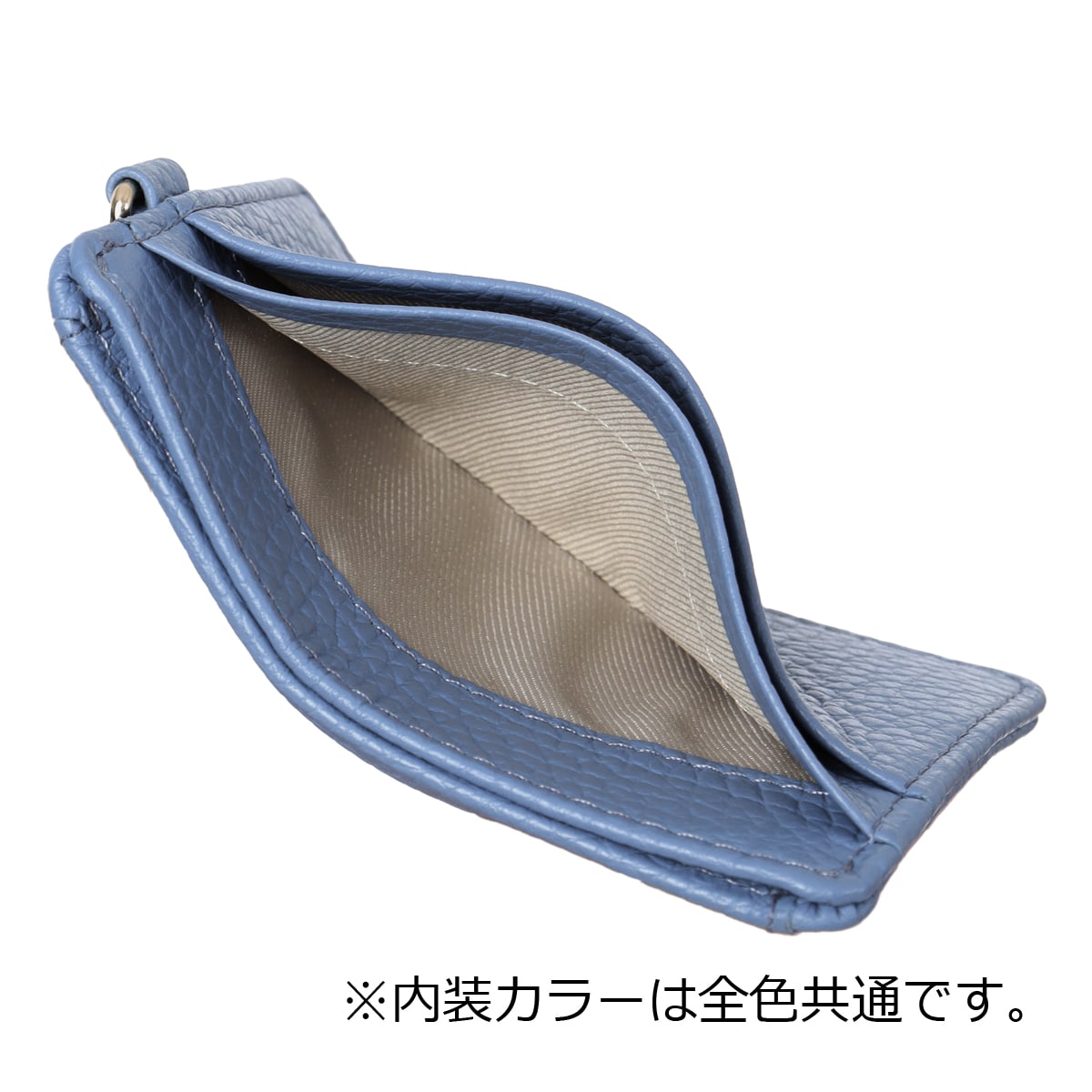 パスケースにちょっと小銭を入れたい方、小銭入れにちょっとカードを入れたい方、どちらを主役にしてもおかしくない、コンパクトでスマートな革小物。横に金具がついているので、ストラップを付けたり、鍵を付けたりお好みでお使いください。