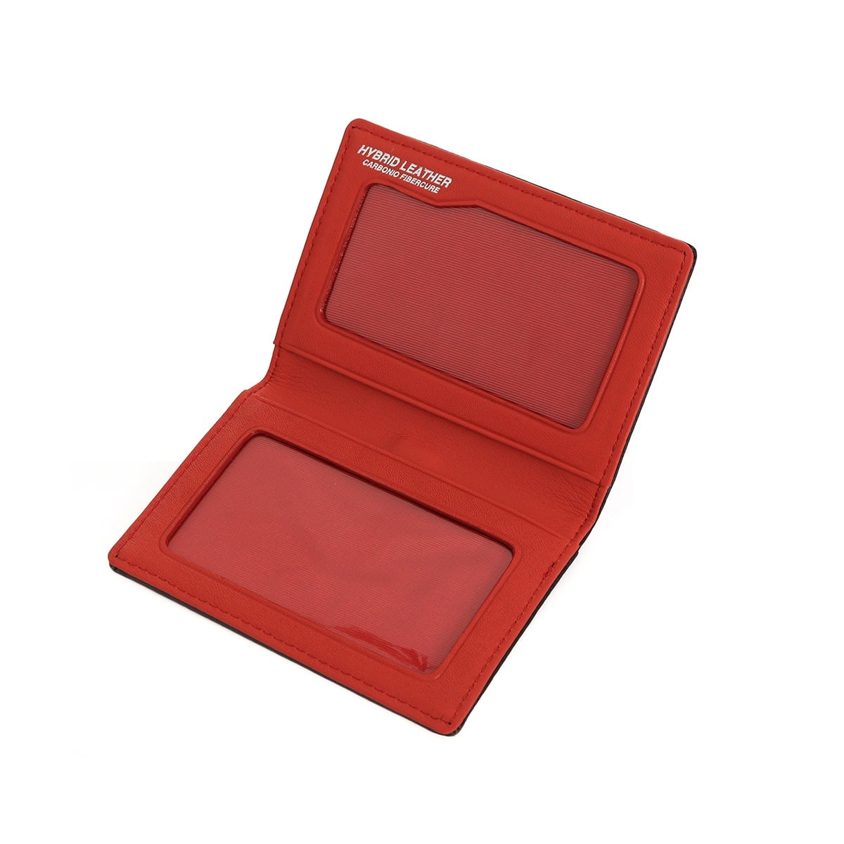 イタリア・キオリーノ社製のステアリングやシフトノブに採用されているハイブリッドレザーを使用しております。牛床革の表面に極薄カーボン柄フィルムを熱処理で貼り合わせており、通常の染色革に比べて耐摩耗性、耐光性、耐熱性、耐水性に優れています。カーボンパターンのモダンな雰囲気が存在感をアピールします。