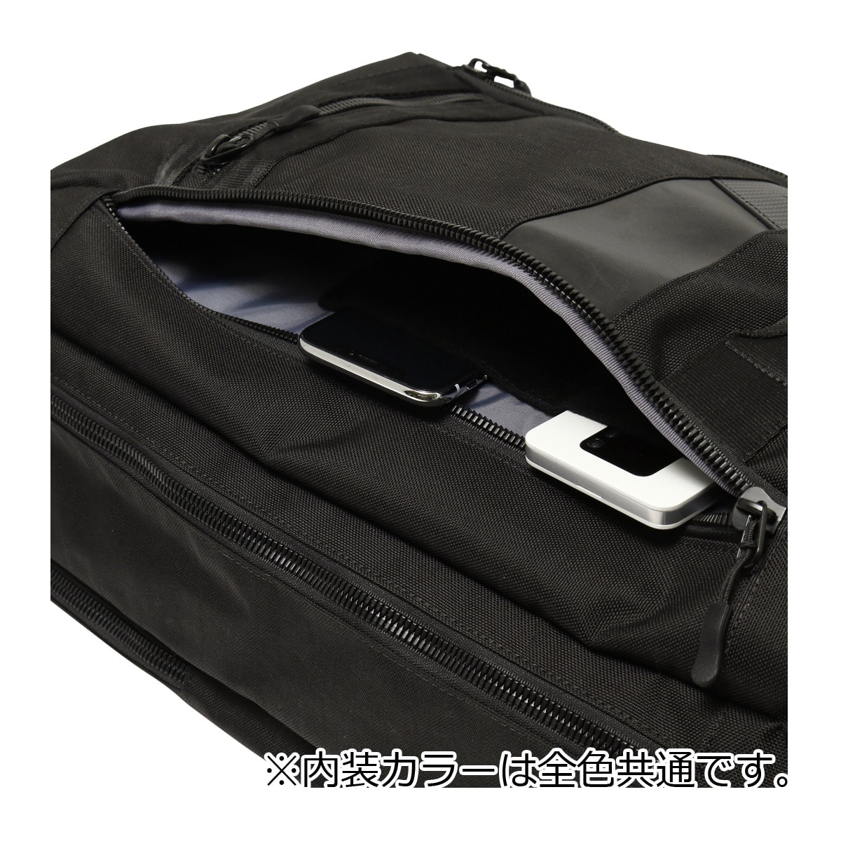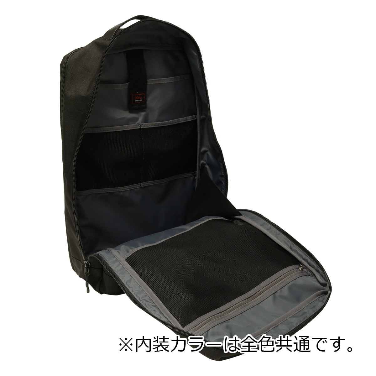 仕様:ダブルファスナー式開閉内側:メッシュファスナーポケット×1ベルクロポケット×1メッシュポケット×2前面:ファスナーポケット×3(内側:フリーポケット×2、ファスナーポケット×1、ペンホルダー×2)背面:ダブルファスナーポケット×1