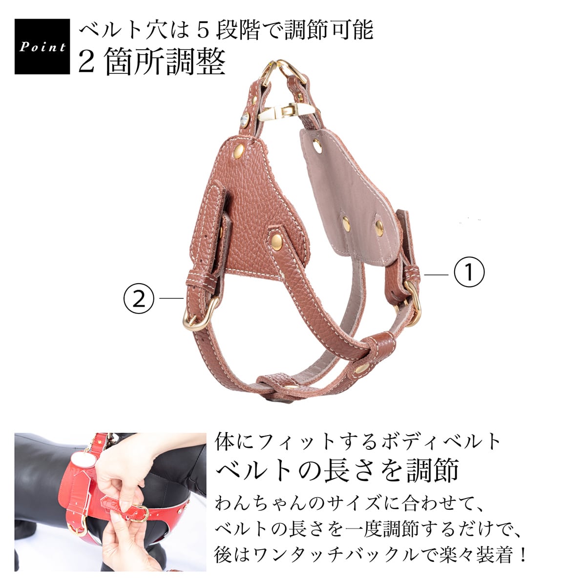 ・脚力が強いため “動き回る” “飛び跳ねる”ベルトの太さや本体部分が負担にならないが、ホールドするデザイン。
