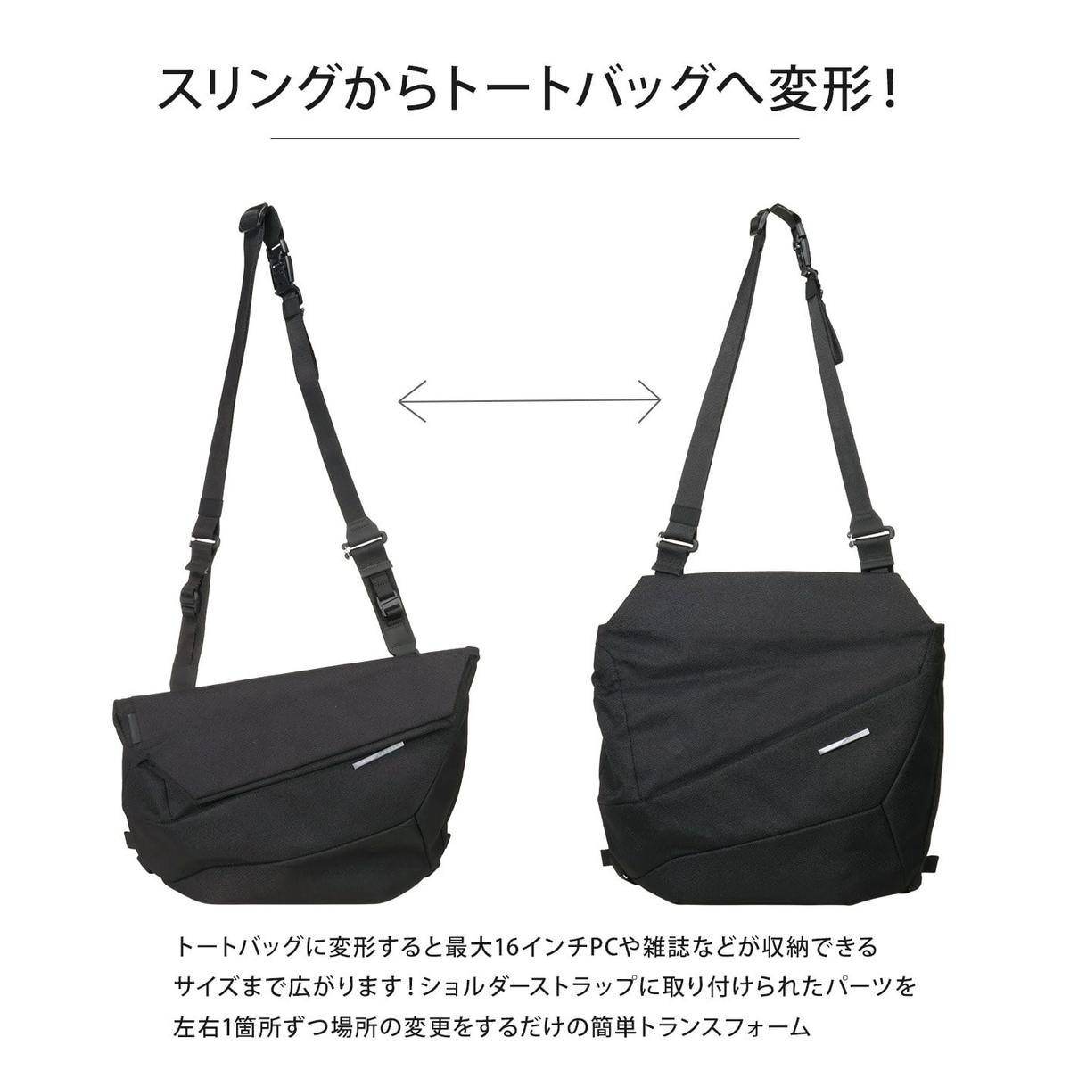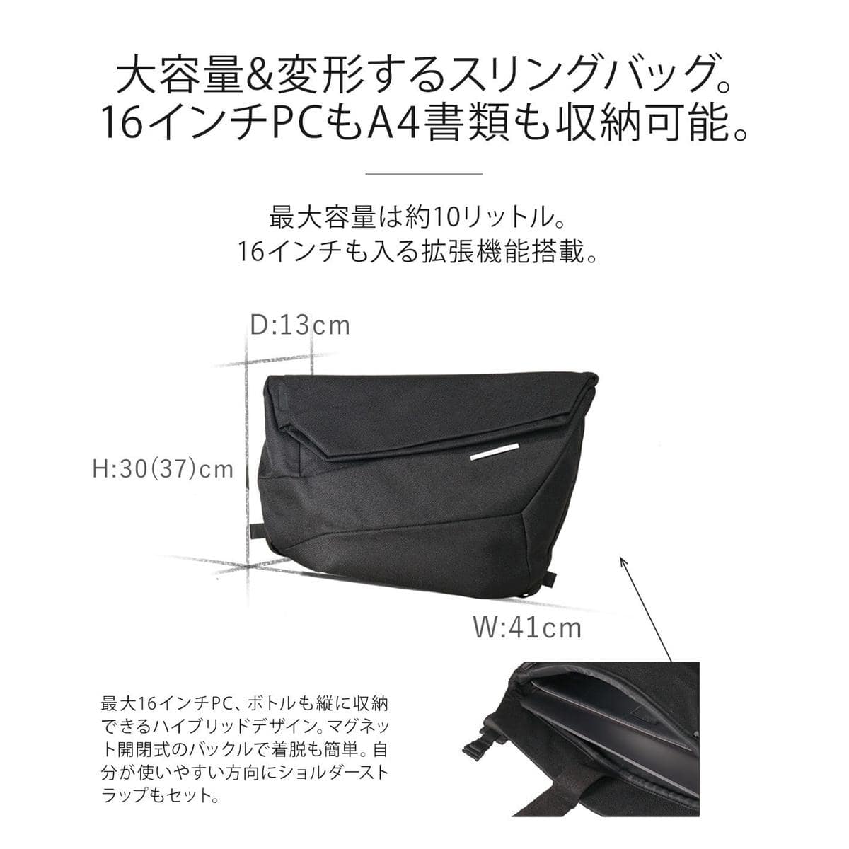 『NIID HYBRID』大容量&変形するスリングバッグ。14インチPCもA4書類も収納可能。スリングからトートバッグへ変形!最大16インチPC、ボトルも縦に収納できるハイブリッドデザイン。マグネット開閉式のバックルで着脱も簡単。自分が使いやすい方向にショルダーストラップもセット。