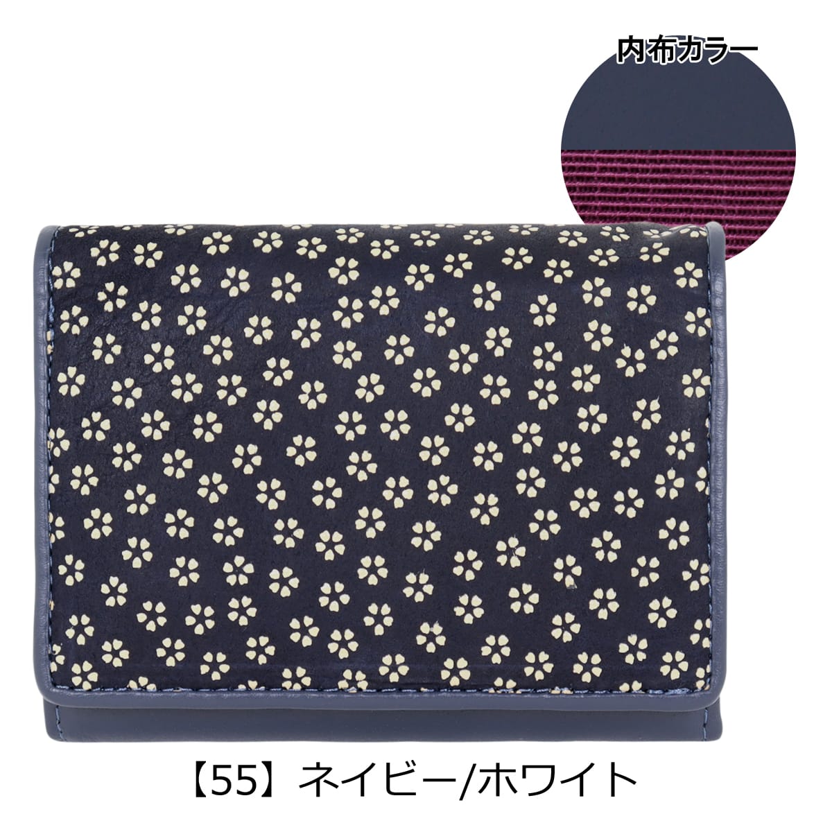 小桜が散りばめられたデザインの二つ折り財布です。鹿革をなめして、上から漆で柄付けするという、約400年ほど前から行われている日本を代表する革製品を使用。鹿革は軽量で、しなやかで強く、やさしい自然の感触を、長く楽しむことができるレザーです。使い込むほどに味わい深くなり、愛着の湧く逸品です。