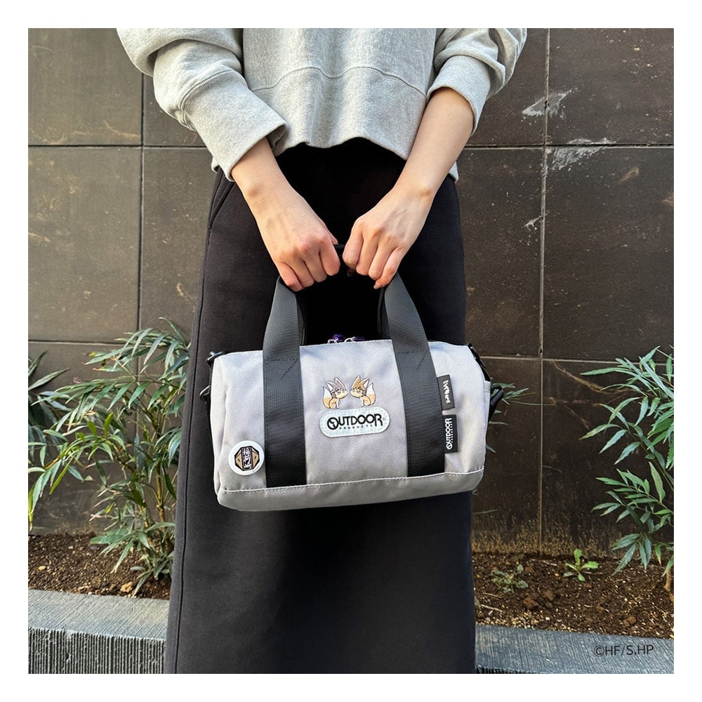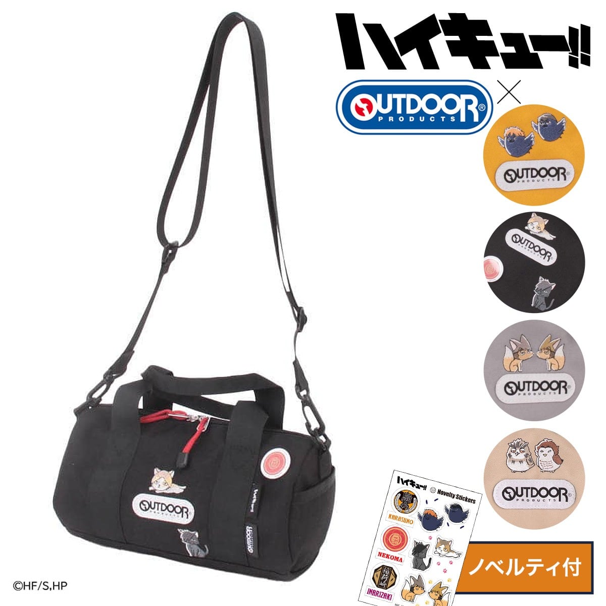 ハイキュー!!×OUTDOOR PRODUCTSのコラボ商品。スマートフォンやコンパクト財布など小物の収納に最適なミニロールボストンモデル。『ハイキュー!!』に登場する「烏野高校」「音駒高校」「稲荷崎高校」「梟谷学園高校」のキャラクターマスコットが刺繍がされたデザイン。各学校をイメージした、明るいカラーがアクセントのオレンジとベーシックカラーのブラック・グレーの3色展開。ラウンド型のコロンとしたデザインで ショルダーストラップは取り外し可能の2WAY仕様。 内側に3つのポケットがあり、さらに外側のサイドポケット付きで収納力も抜群。モチーフの缶バッジ付きで、好きな場所につけられます。※オリジナル缶バッジについて:ご購入のカラーによって付属する缶バッジの種類が決まっております。1点のご購入につき缶バッジが一つ付きます。お客様にて選ぶことはできません。