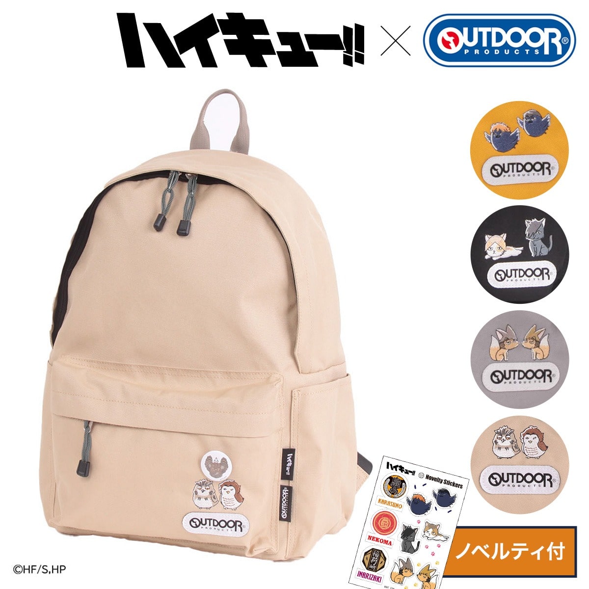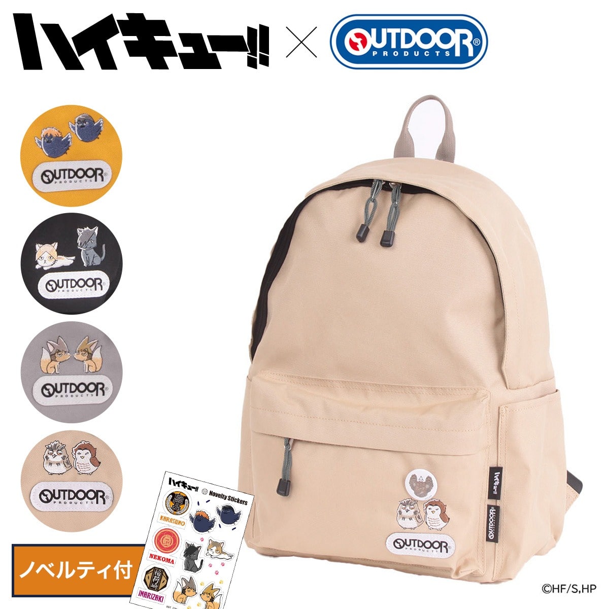 ハイキュー!!×OUTDOOR PRODUCTSのコラボ商品。『ハイキュー!!』に登場する「烏野高校」「音駒高校」「稲荷崎高校」「梟谷学園高校」のアニマルモチーフになった各キャラクターが刺繍されたデザイン。飲み物や傘の収納に便利なサイドポケット付き、豊富なポケットが荷物の整理に便利。A4サイズも収納可能です。大容量なので一泊ほどの旅行にもぴったり。モチーフの缶バッジ付きで、好きな場所につけられます。※オリジナル缶バッジについて:ご購入のカラーによって付属する缶バッジの種類が決まっております。1点のご購入につき缶バッジが一つ付きます。お客様にて選ぶことはできません。