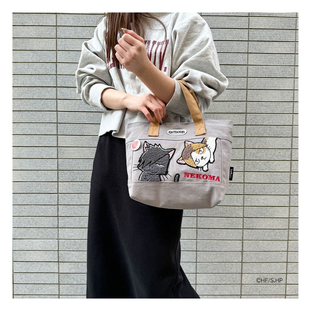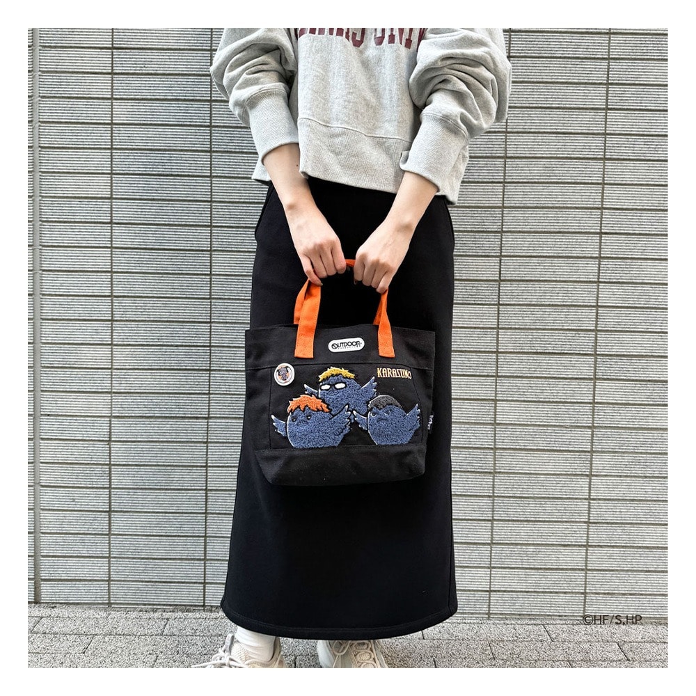 ハイキュー!!×OUTDOOR PRODUCTSのコラボ商品。スマートフォンや長財布、コンパクト財布が収納できるキャンバスミニトート。中には小物の小分けに適した中吊りポケットを搭載しています。『ハイキュー!!』に登場する「烏野高校」「音駒高校」「稲荷崎高校」「梟谷学園高校」のキャラクターマスコットをさがら刺繍で表現。モチーフの缶バッジ付きで、好きな場所につけられます。※オリジナル缶バッジについて:ご購入のカラーによって付属する缶バッジの種類が決まっております。1点のご購入につき缶バッジが一つ付きます。お客様にて選ぶことはできません。