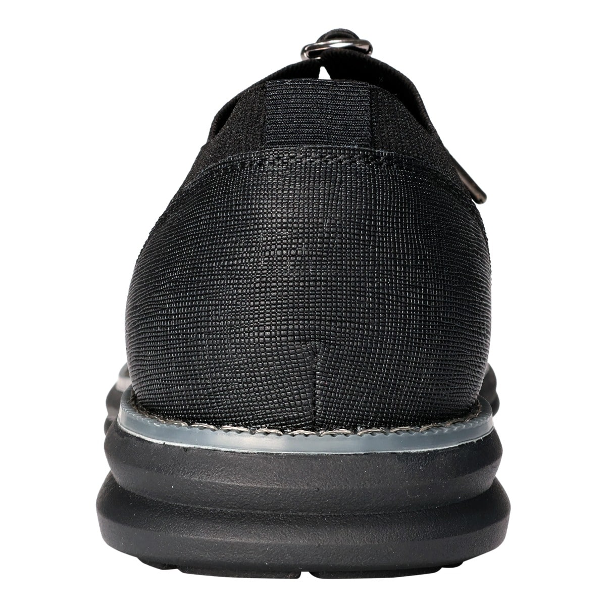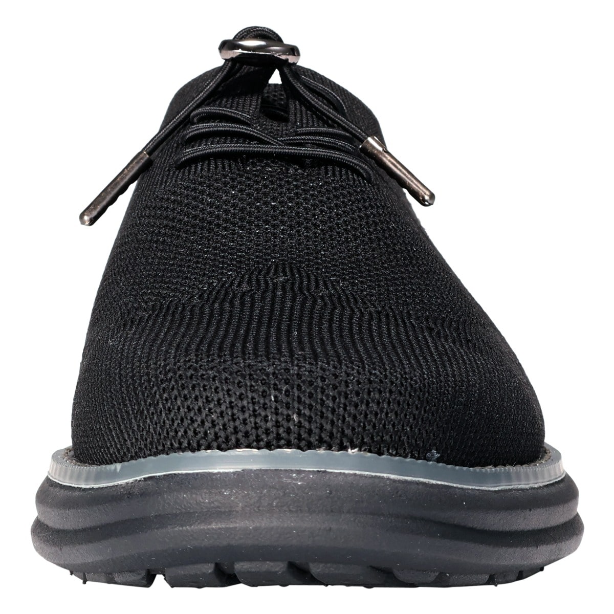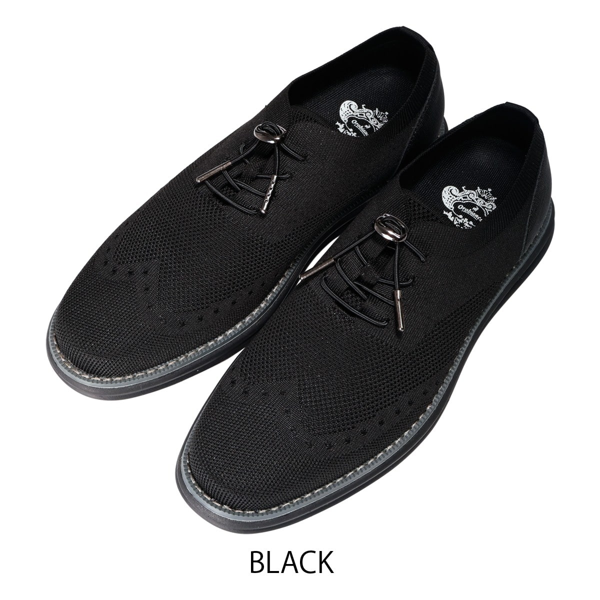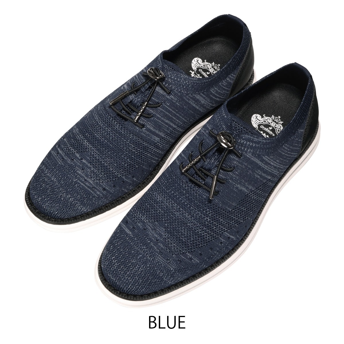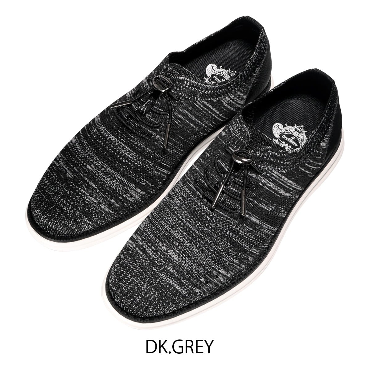 ミニマルなデザインを表現したビジネスライクのニットスニーカーです。エラスティックレースを使用する事で、着脱の不便さを改善。シンプルなデザインながらも、数色の糸を編み分けている為、深みのある色合いとなっています。アウトソールは軽量なEVAをメインに使用し、耐久性を考慮して摩耗度が高いパターンにラバー配置した素材を選びました。ビジネスにも活躍するスタイルですので、是非ストレスフリーで快適な履き心地でお楽しみください。