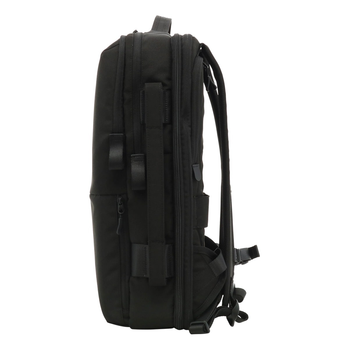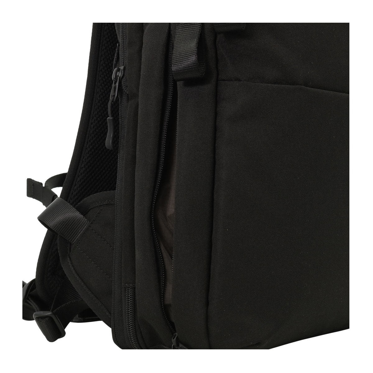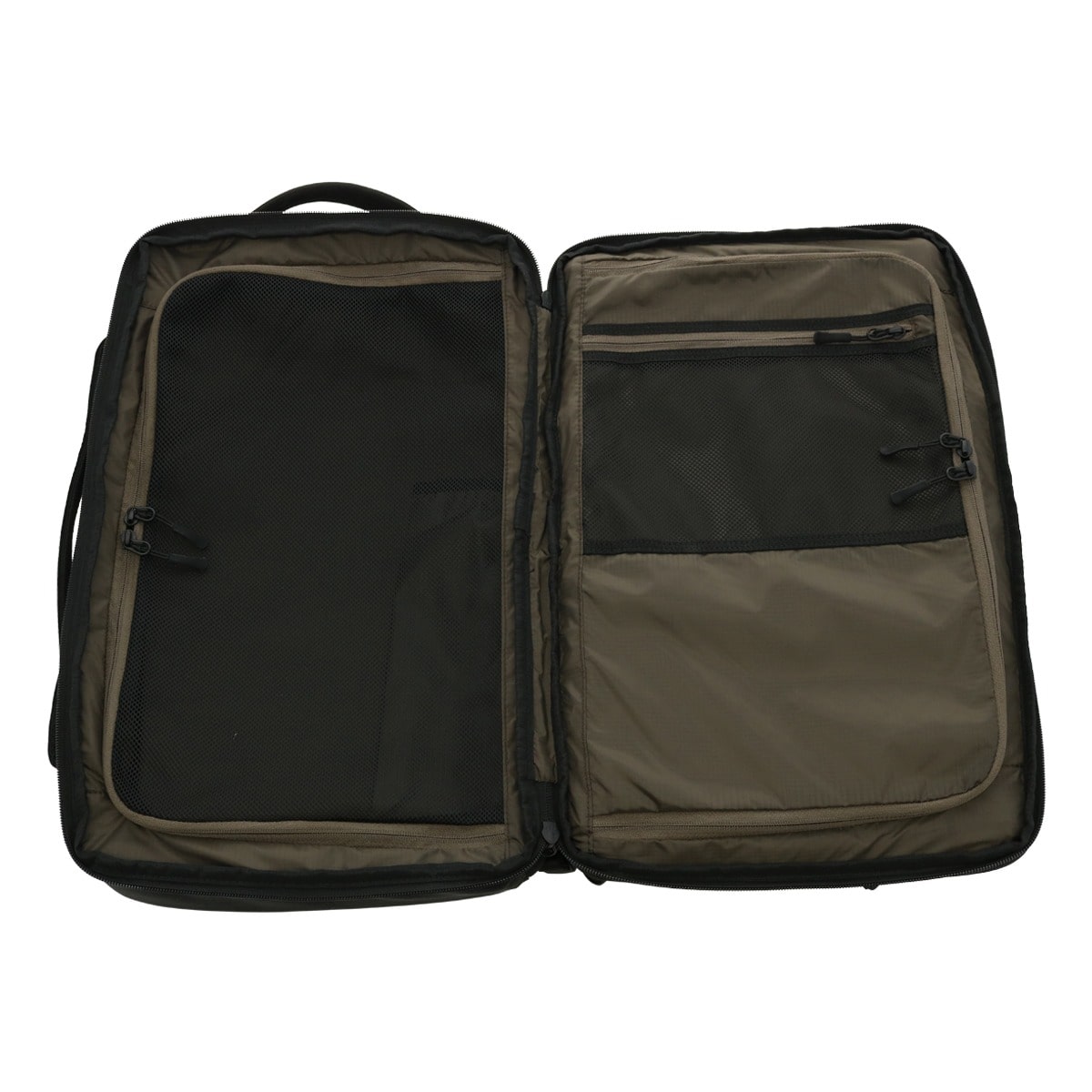 仕様:ダブルファスナー式開閉内側:ダブルファスナーメッシュポケット×1ダブルファスナーポケット×1ファスナーメッシュポケット×1前面:ファスナーポケット×2ダブルファスナーポケット×1(内側:ファスナーポケット×1、フリーポケット×1、ペンホルダー×2)背面:ダブルファスナーポケット×1側面:ファスナーポケット×1エキスパンダブル機能(内側:ダブルファスナーポケット×1)キャリーセットアップチェストベルト