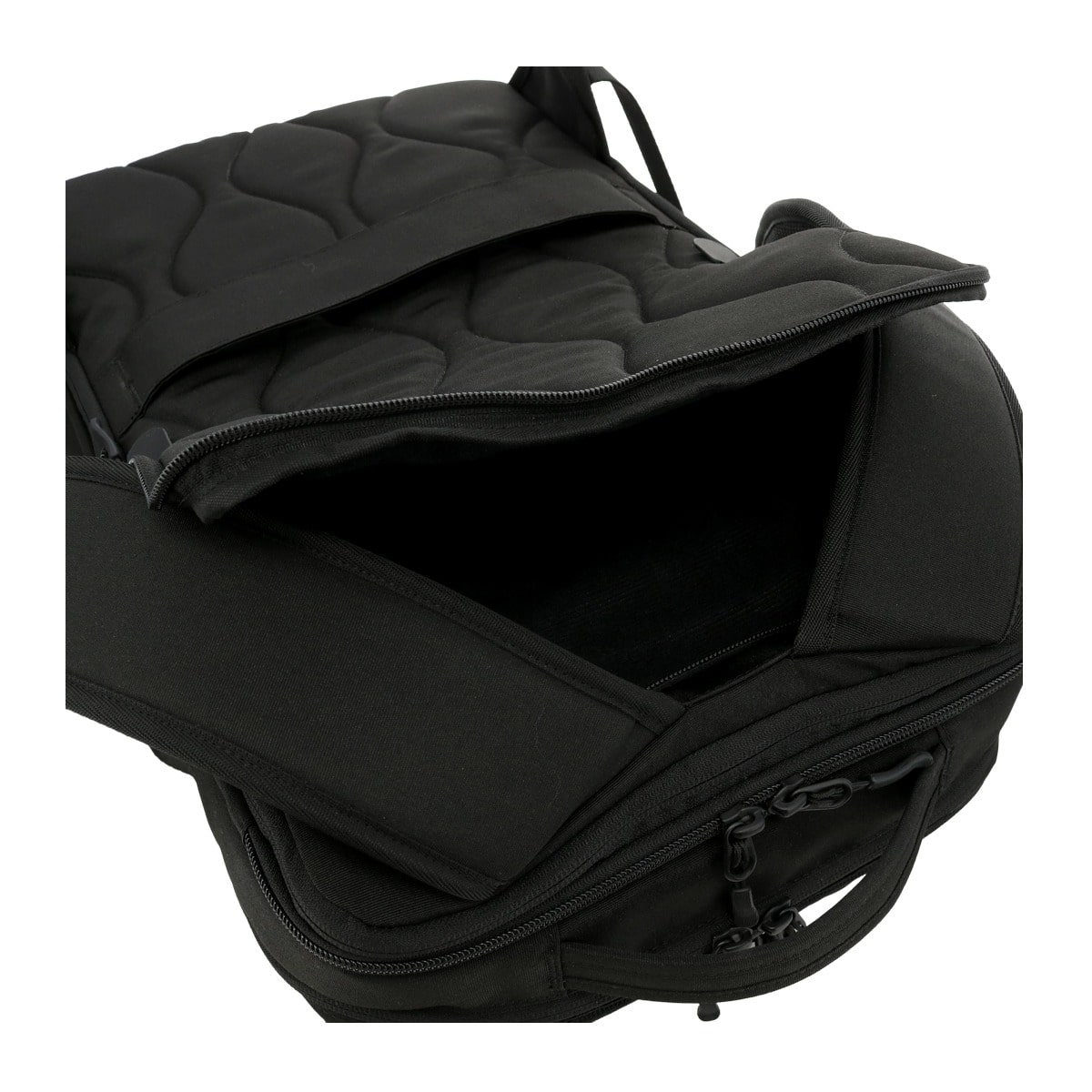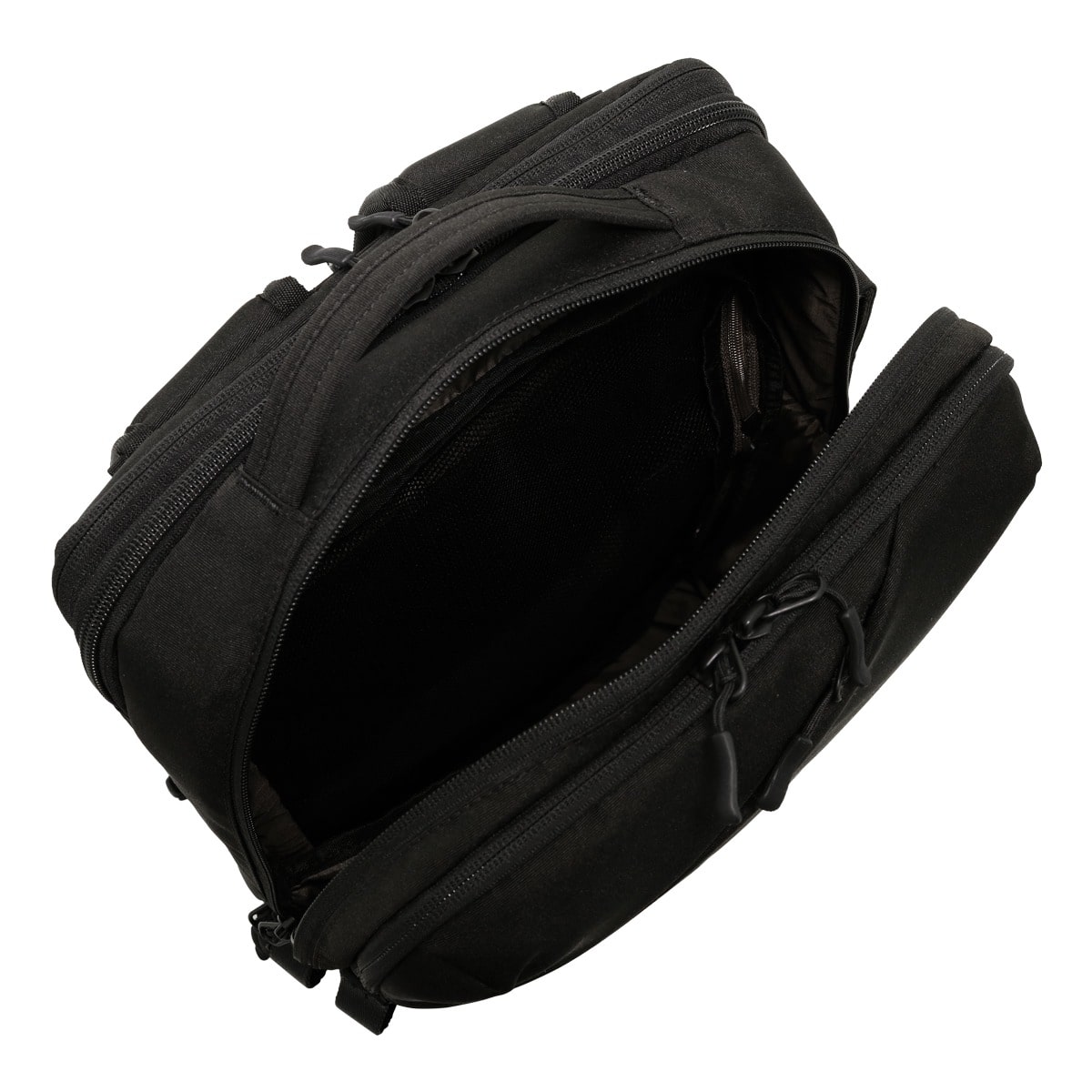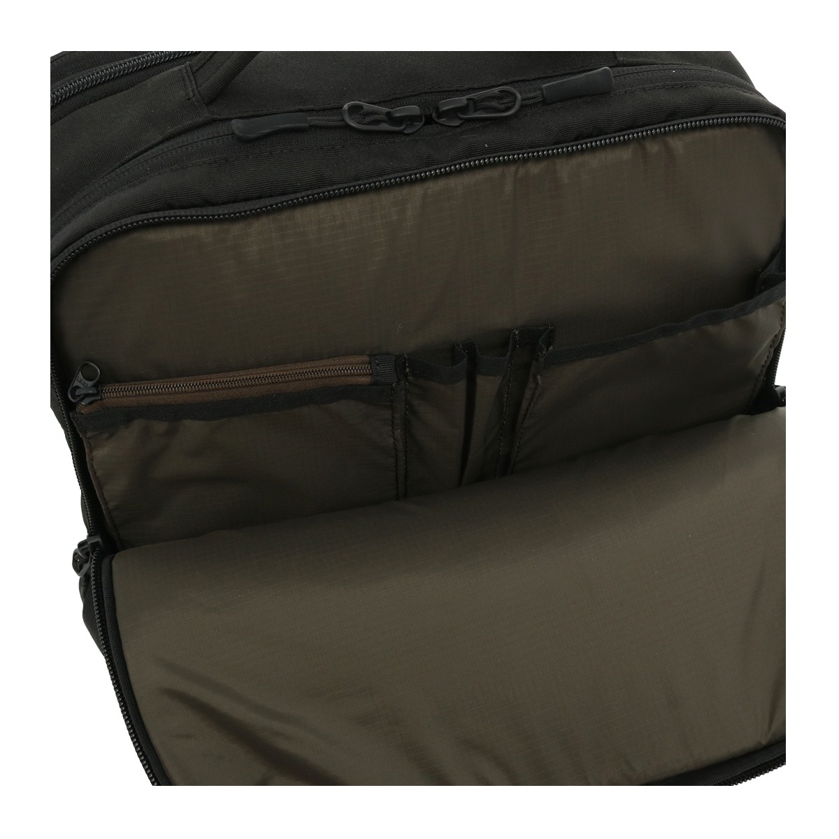 仕様:ダブルファスナー式開閉内側:ダブルファスナーメッシュポケット×1ダブルファスナーポケット×1ファスナーメッシュポケット×1前面:ファスナーポケット×2ダブルファスナーポケット×1(内側:ファスナーポケット×1、フリーポケット×1、ペンホルダー×2)背面:ダブルファスナーポケット×1側面:ファスナーポケット×1エキスパンダブル機能(内側:ダブルファスナーポケット×1)キャリーセットアップチェストベルト