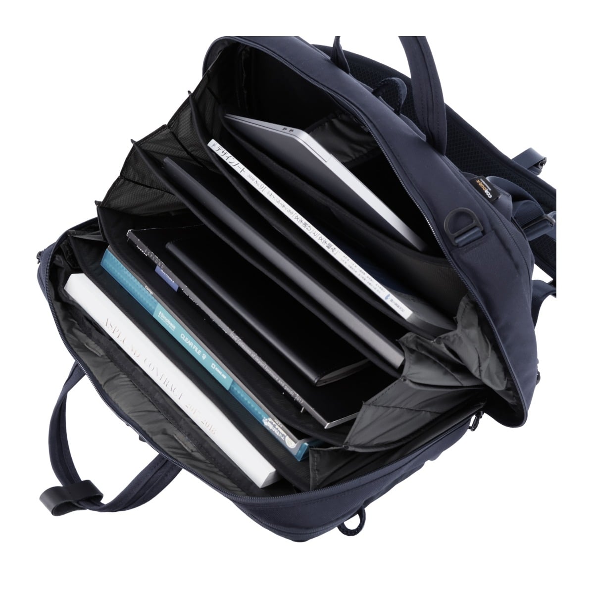 リュック、手持ち、ショルダーの3スタイルで使えるアイテム。スタイルに合わせて使い分けてください。メインファスナー内装は、ジャバラ付きの大きく開く仕様。仕分け収納ができ、細かい整理も可能です。