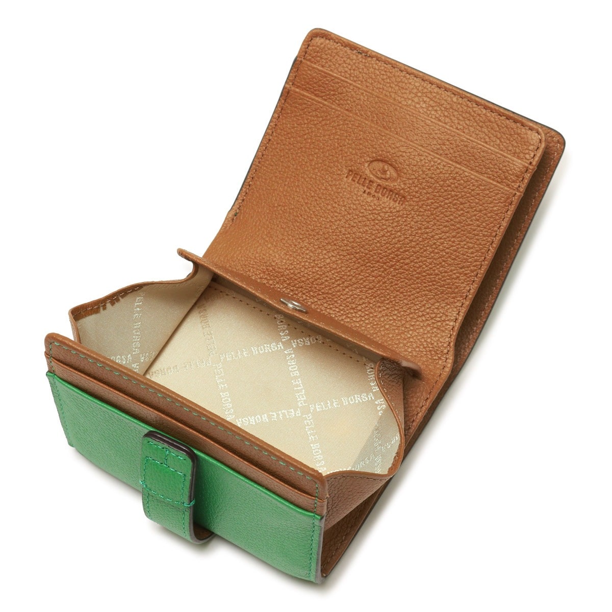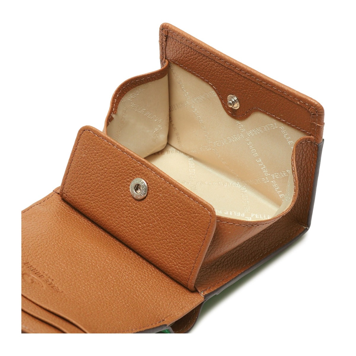 PELLE BORSAのレーザーパンチングがアクセントのシリーズです。しっかりと粒立った小さめのシボは小傷や汚れも目立ちにくく、扱いやすいのも魅了的。小ぶりなバッグにもストレスなく収まる二つ折りミニ財布。ボックス型の小銭入れ、紙幣とレシートを分ける仕切りなど、小さくても機能がぎゅっと詰まった優秀ウォレットです。