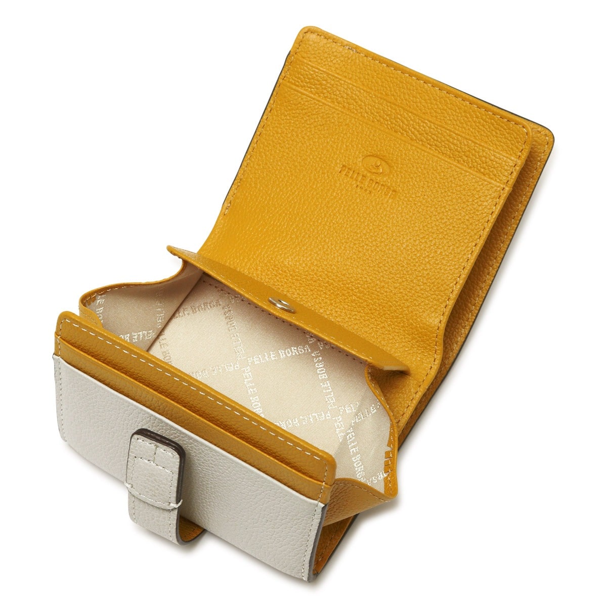 PELLE BORSAのレーザーパンチングがアクセントのシリーズです。しっかりと粒立った小さめのシボは小傷や汚れも目立ちにくく、扱いやすいのも魅了的。小ぶりなバッグにもストレスなく収まる二つ折りミニ財布。ボックス型の小銭入れ、紙幣とレシートを分ける仕切りなど、小さくても機能がぎゅっと詰まった優秀ウォレットです。