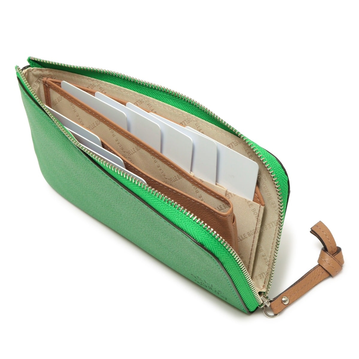 仕様:L字ファスナー式開閉内側:仕切り×2小銭入れ×1カードポケット×10フリーポケット×1背面:フリーポケット×1