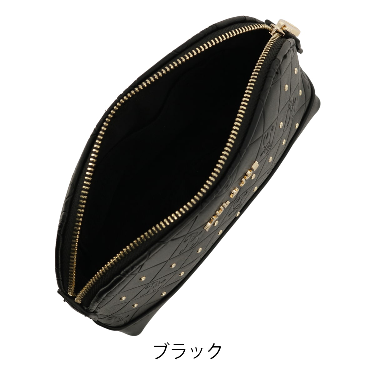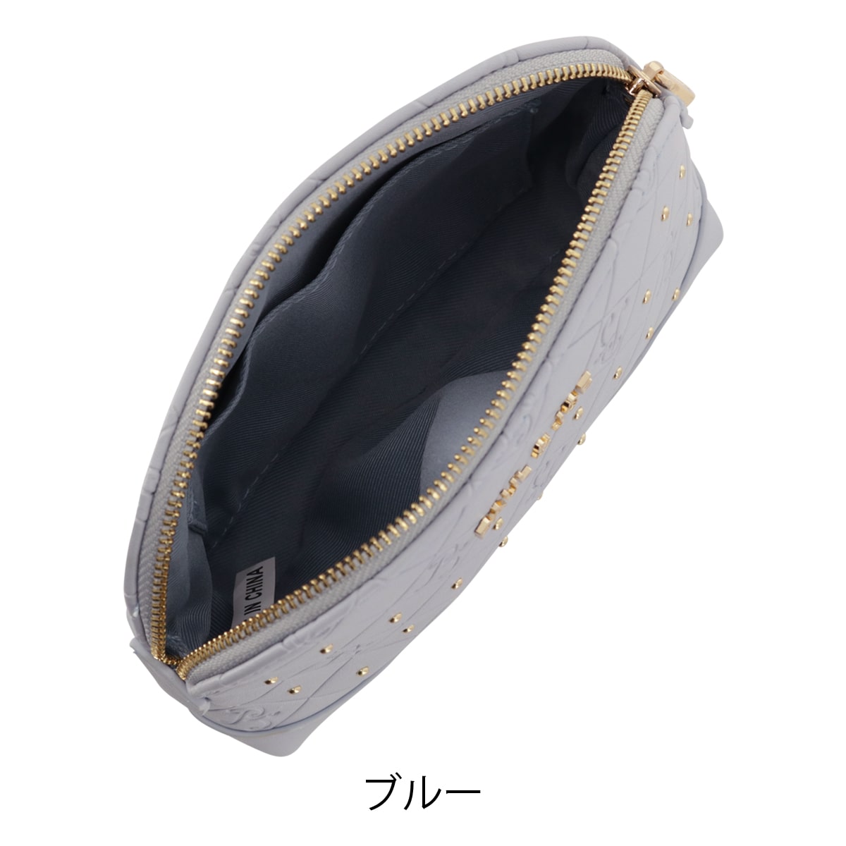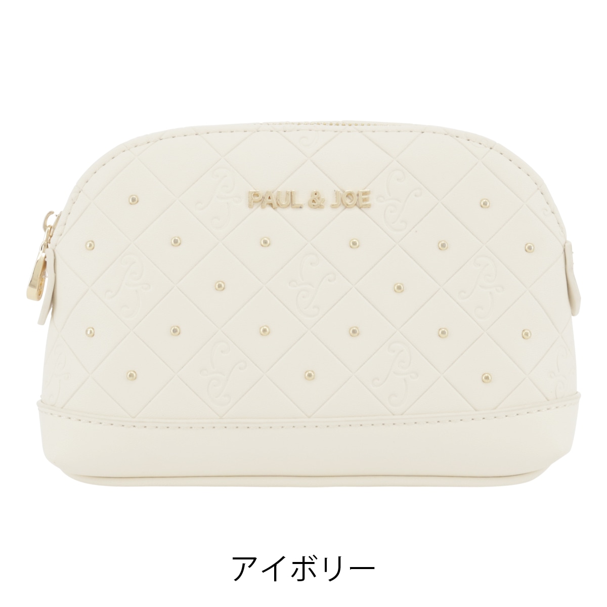 PJロゴのエンボスがおしゃれなポーチの登場です。ゴールドのスモールスタッズがアクセントになっています。薄型でバッグの中でもかさばらず、持ち運びにピッタリ。