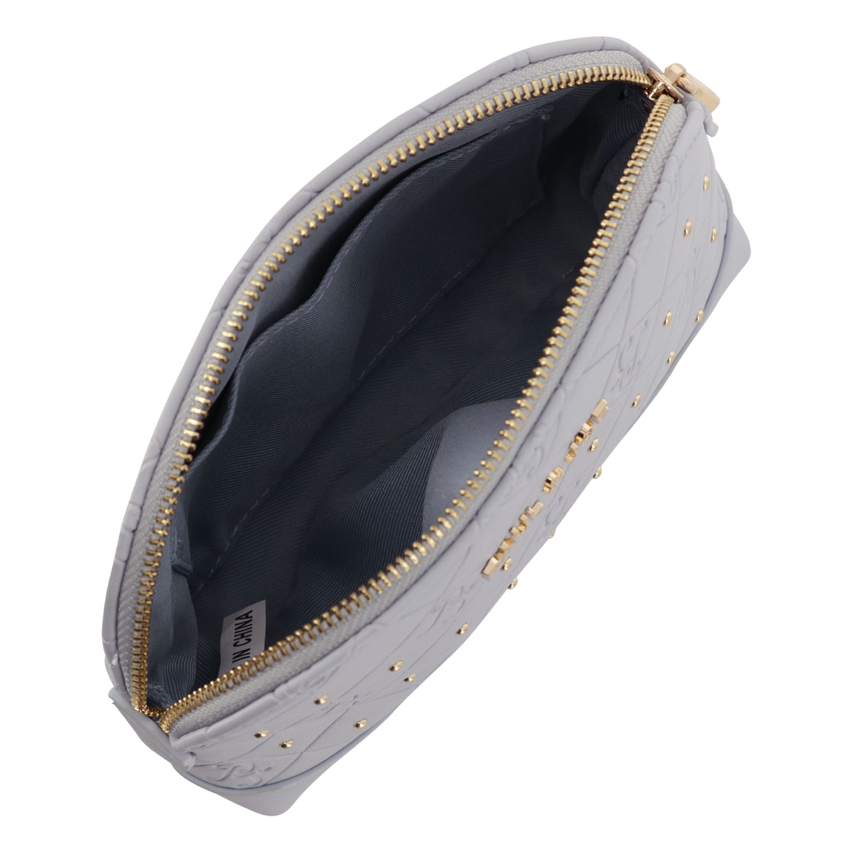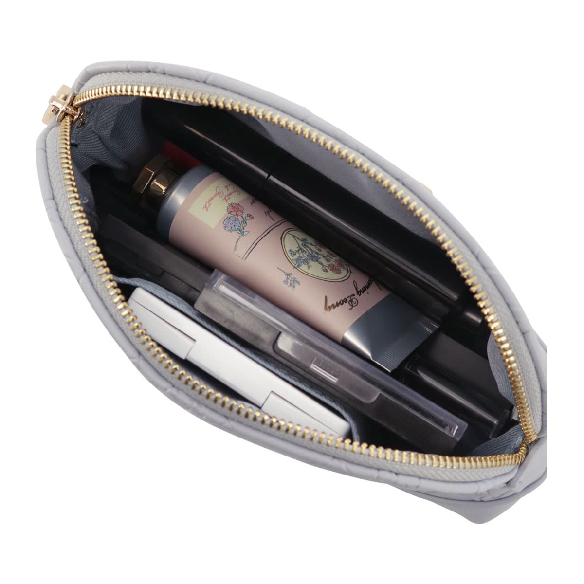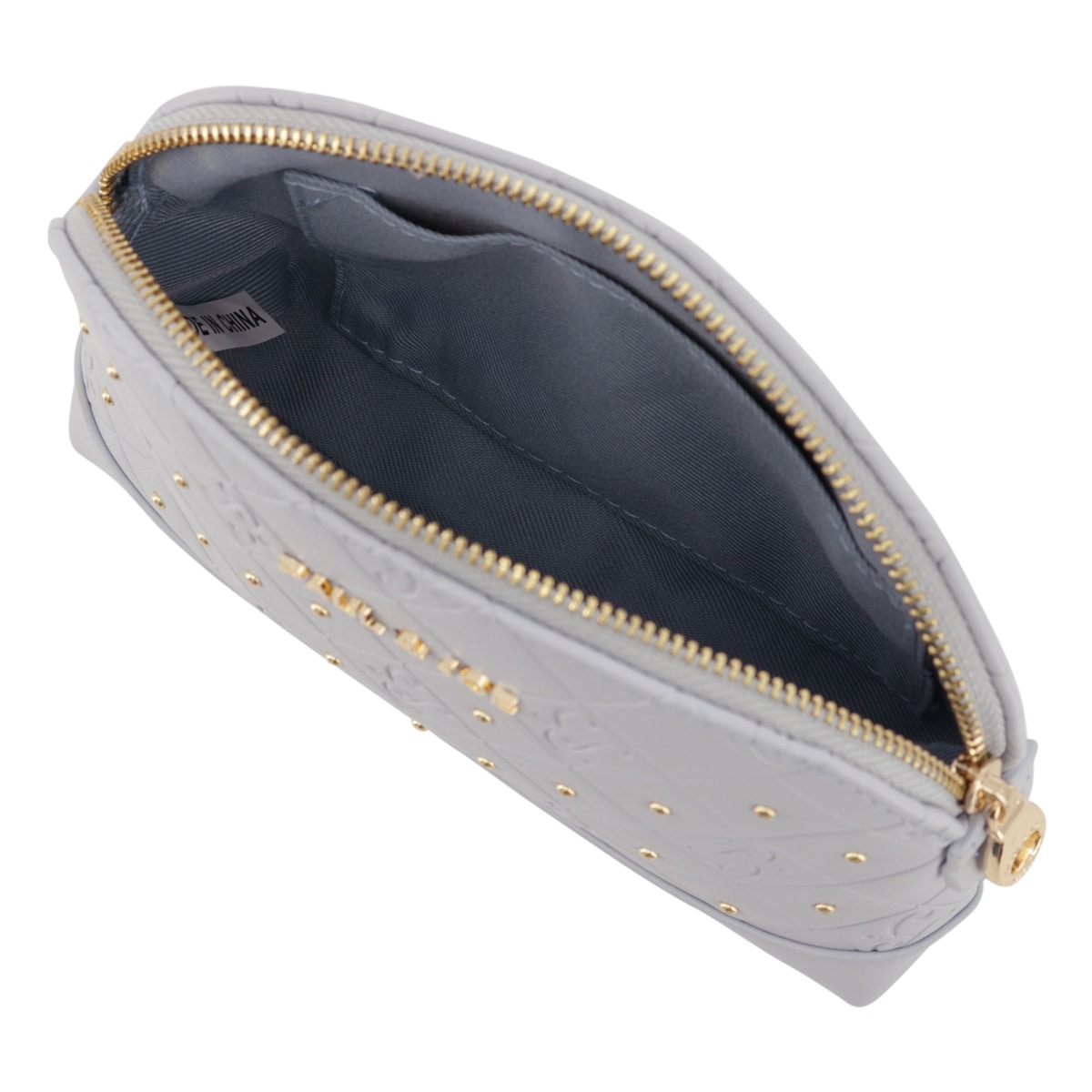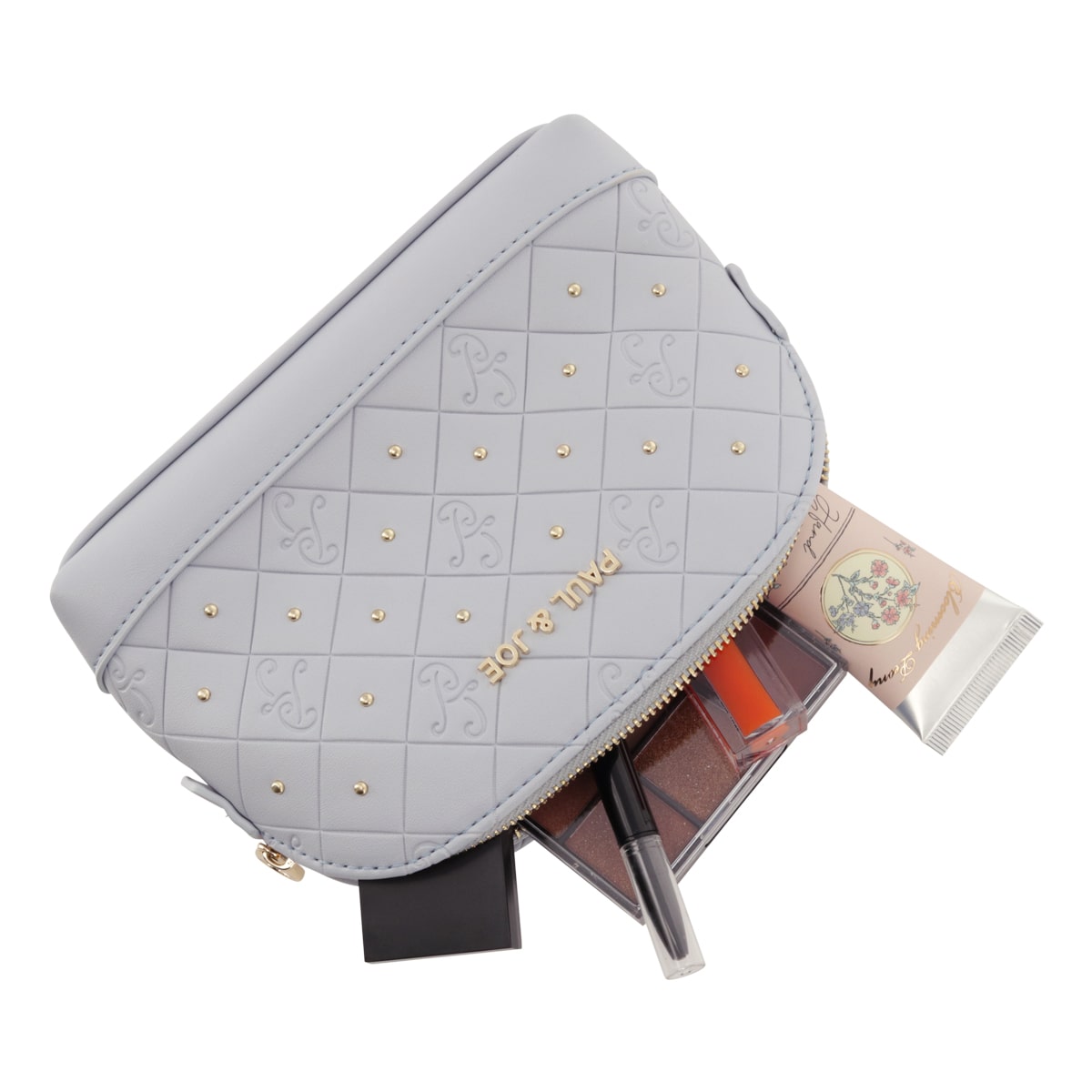 PJロゴのエンボスがおしゃれなポーチの登場です。ゴールドのスモールスタッズがアクセントになっています。薄型でバッグの中でもかさばらず、持ち運びにピッタリ。
