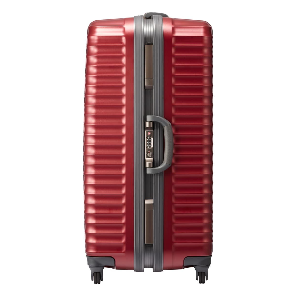 PROTECA Stratum|軽量・硬質なマグネシウム合金フレームと「ストラタム」=「層」の様に連なる水平リブが、スーツケースに必要な強度を確保します。ロックにはTSAダイヤル錠を採用。