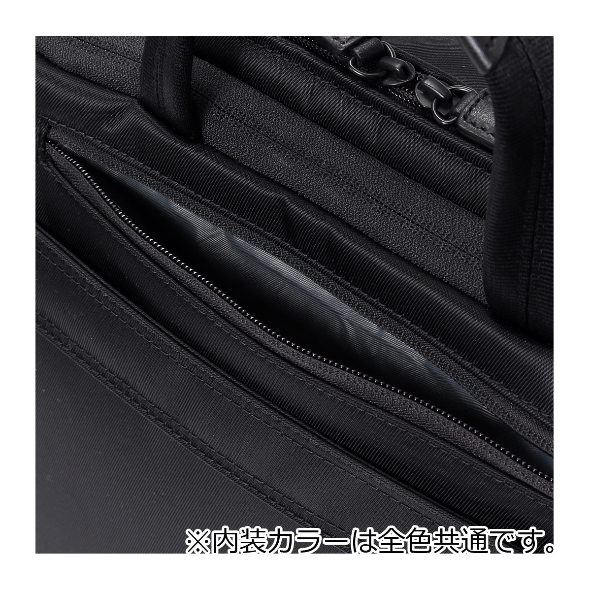 軽量、ミニマルで機能的なビジネスシリーズ「デボネア5」。本体には、高い撥水機能を備えた上質感のあるナイロンツイル素材を、ハンドル部とファスナー引手には手馴染みのよい牛革を採用。 シンプルなデザインは、必要な機能を残しつつ無駄を省くことで軽量な設計に仕上げています。