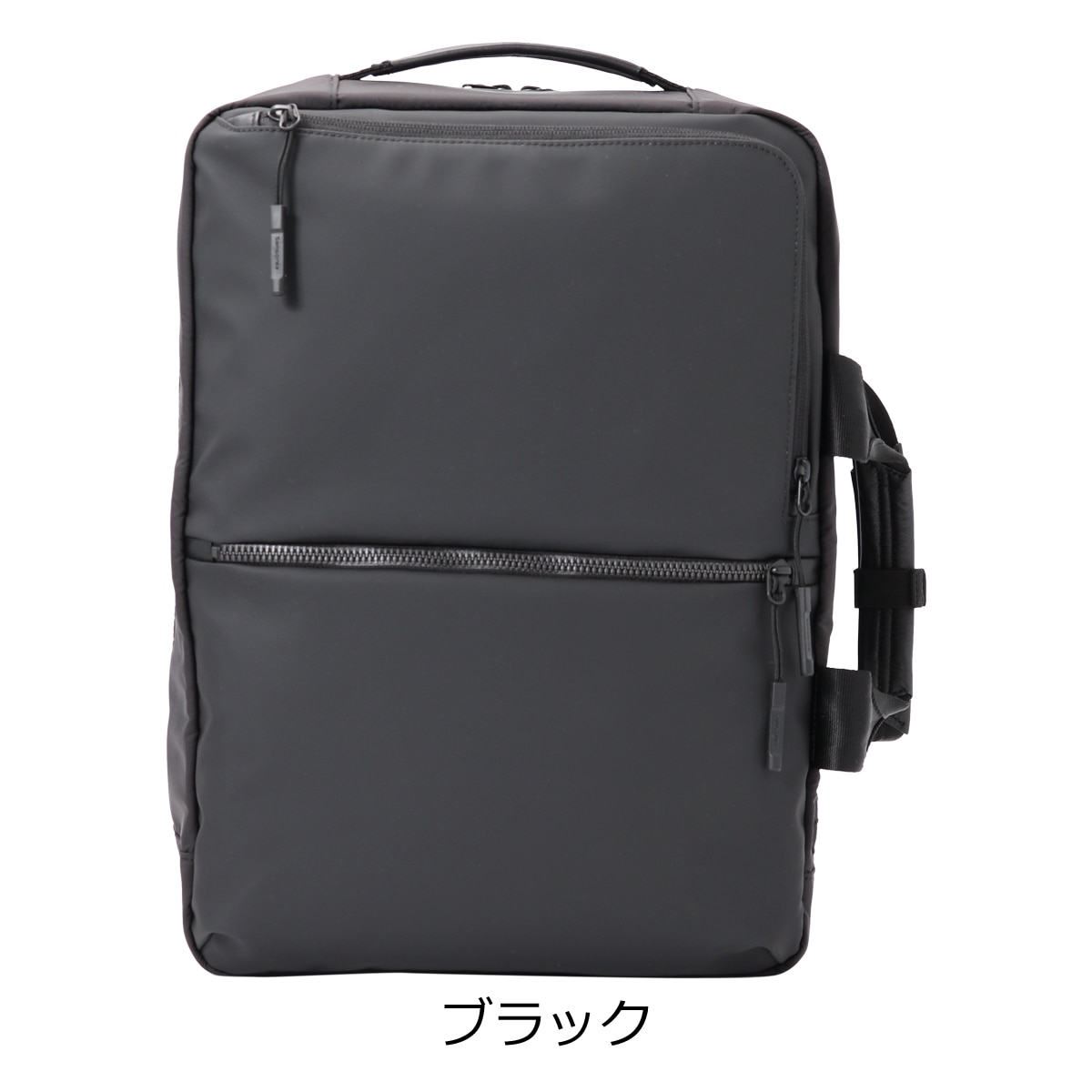 仕様:ダブルファスナー式開閉内側:ベルクロ式PCポケット×1フリーメッシュポケット×2ファスナーポケット×1前面:L字ダブルファスナーポケット×1(内側:L字ダブルファスナーメッシュポケット×1、フリーポケット×1)ファスナーポケット×1(裏地PVCコーティング)背面:内部直結ファスナー×1キャリーセットアップ