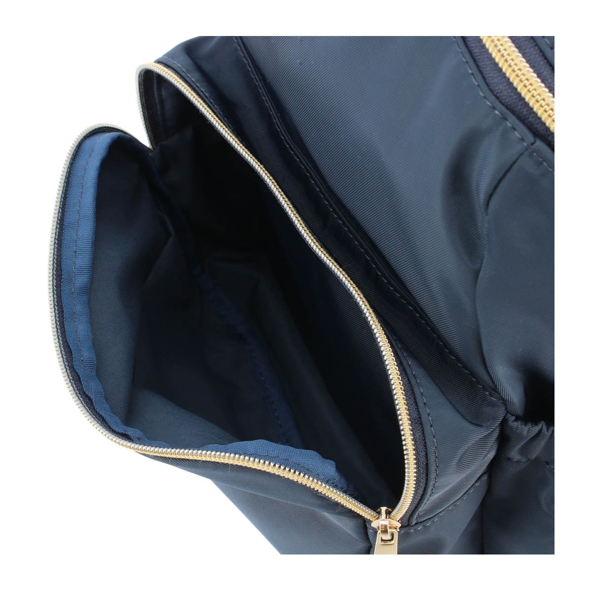 仕様:ダブルファスナー式開閉内側:ファスナーポケット×1フリーポケット×4前面:ファスナーポケット×1(フリーポケット×2)背面:ファスナーポケット×1側面:ギャザーオープンポケット×2