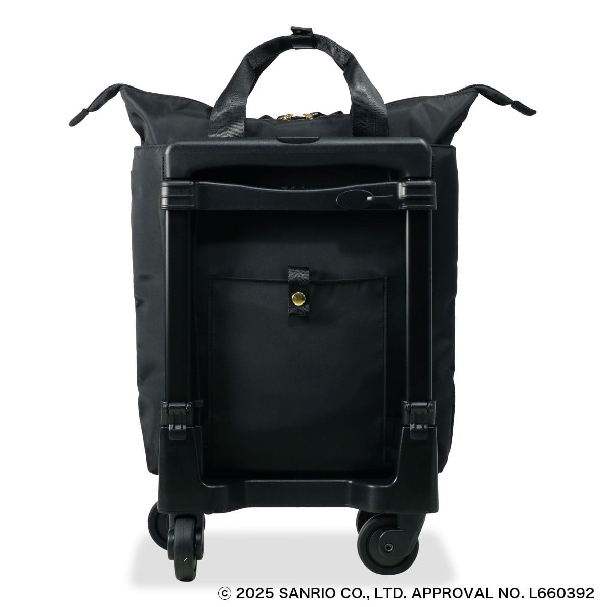 ハローキティ50周年アニバーサリー数量限定モデルです。大き目のリボンがチャーミングで可愛らしさと実用性を兼ね備えたシリーズです。シックな黒基調ながら、ファスナープラーにはリボンチャームをあしらい、バッグ内装は総柄プリントを使用しています。キャリーバッグはミドルサイズのトートバッグ型で日常的に長く使用できるバッグフォルムです。
