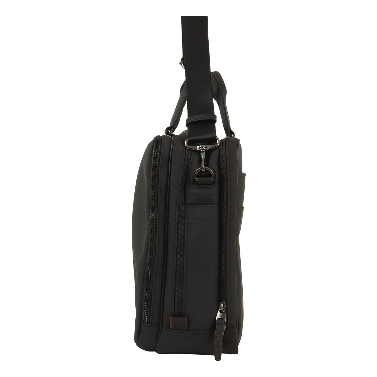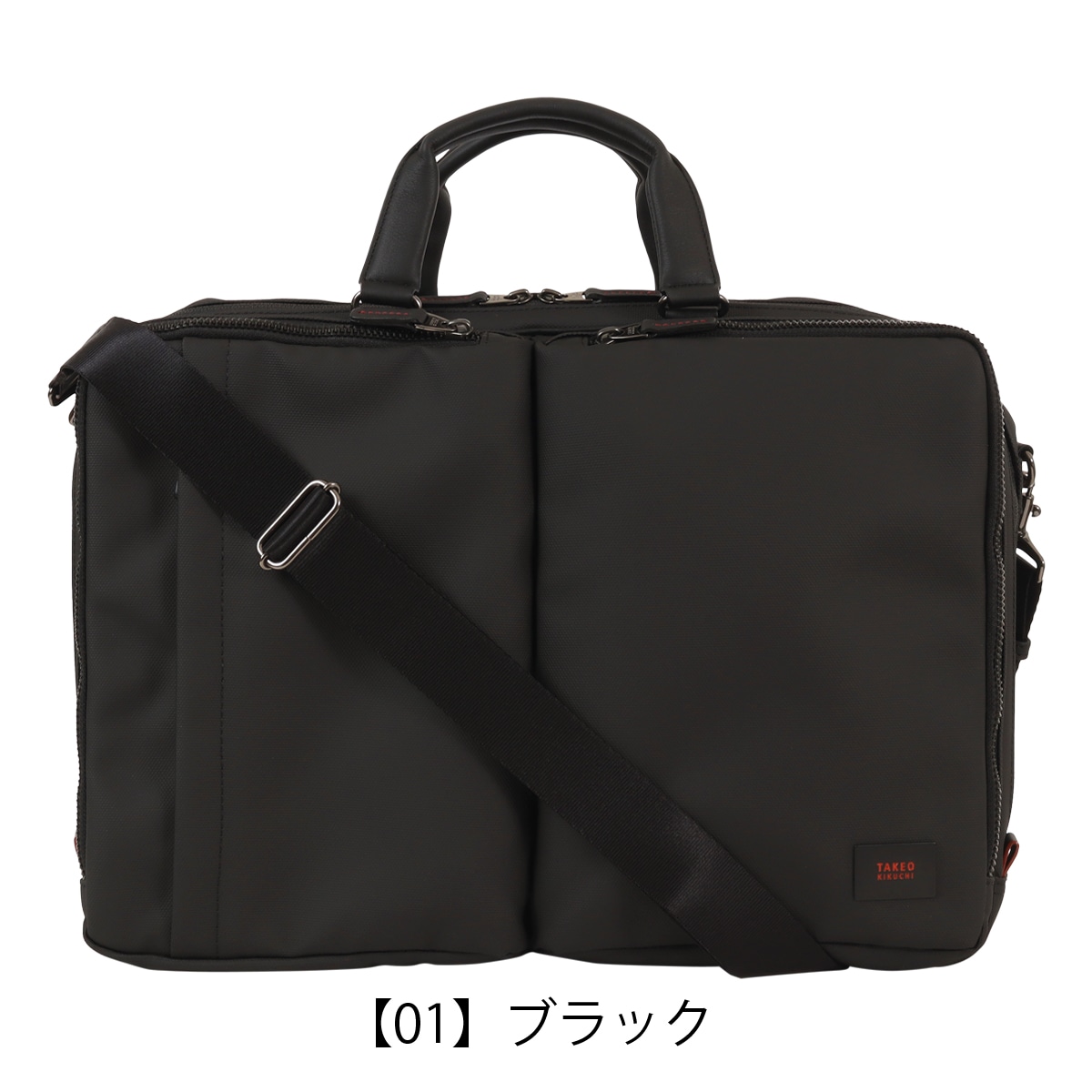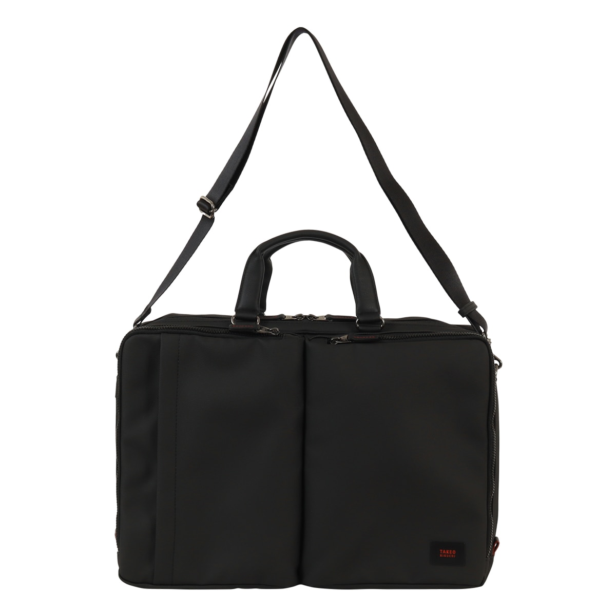 出張にも対応したタケオキクチのB4サイズビジネスバッグ。斜め掛けとしても使える肩紐付きの2WAYバッグです。従来の出社型「オフィスワーク」と、自宅やシェアオフィスなどオフィスと離れた場所で働く「テレワーク」を組み合わせた働き方が増えた中で柔軟に対応できるよう、15.6インチノートパソコンの持ち運びに対応しています。オールブラックでどんなシーンでも使いやすいビジネスバッグですが、ポイントにさりげなくワイン色を施しています。収納機能抜群で、普段の通勤から短期出張まで幅広く使えるビジネスバッグです。