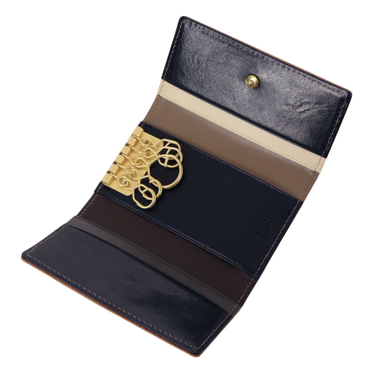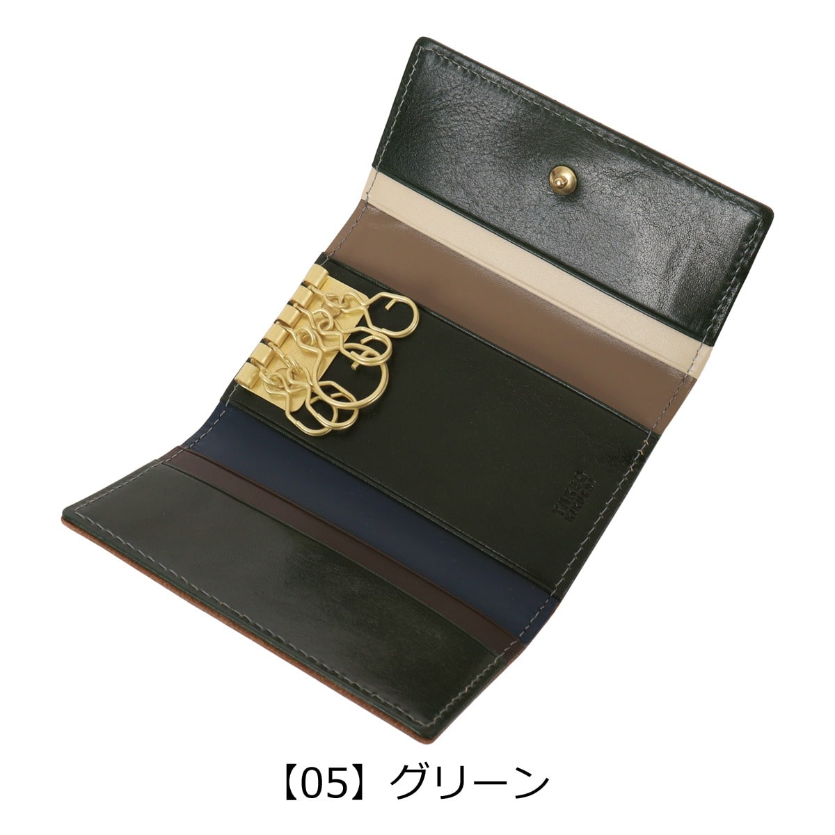 仕様:スナップボタン式開閉内側:5連キーフック×1(大×1、小×4)カードポケット×4背面:カードポケット×1