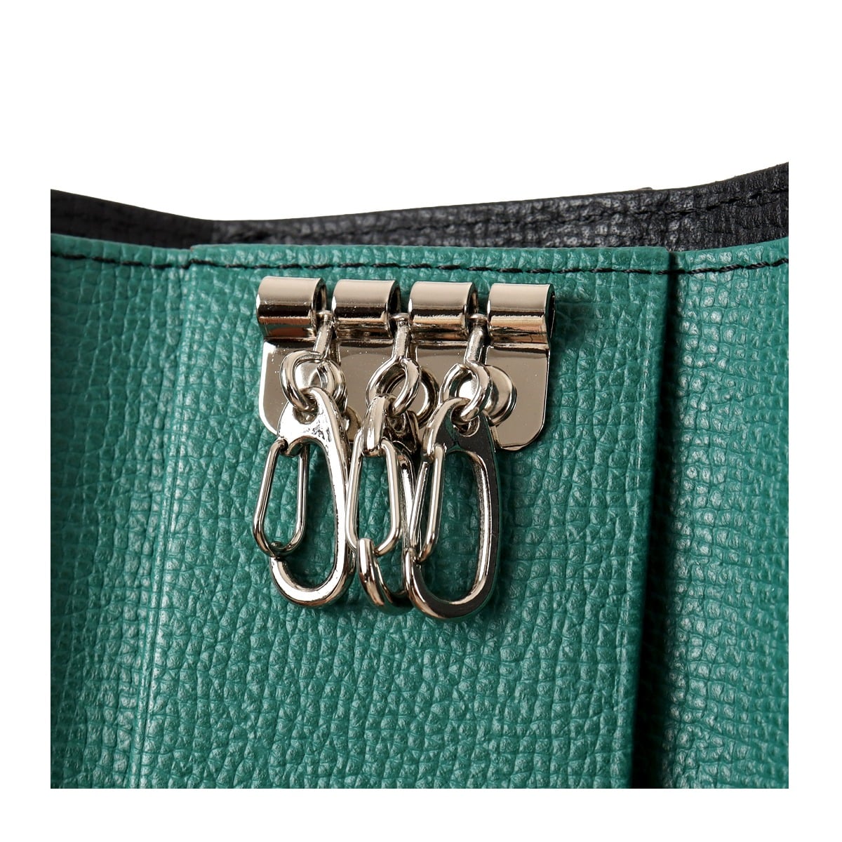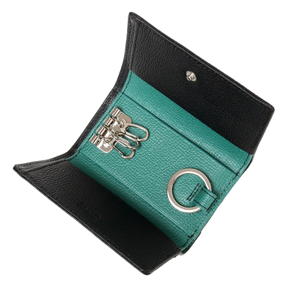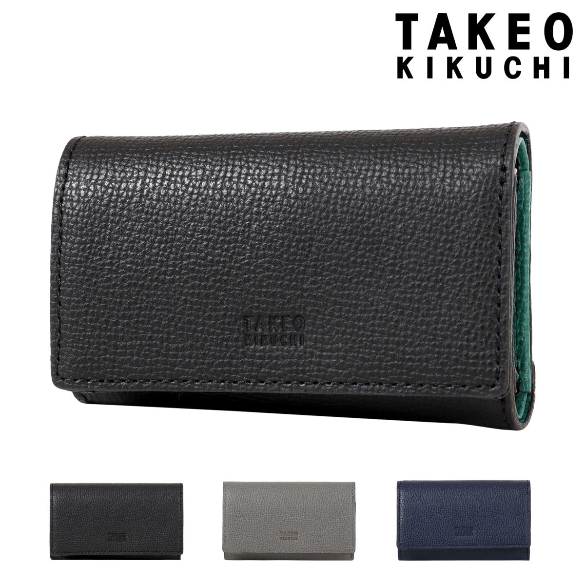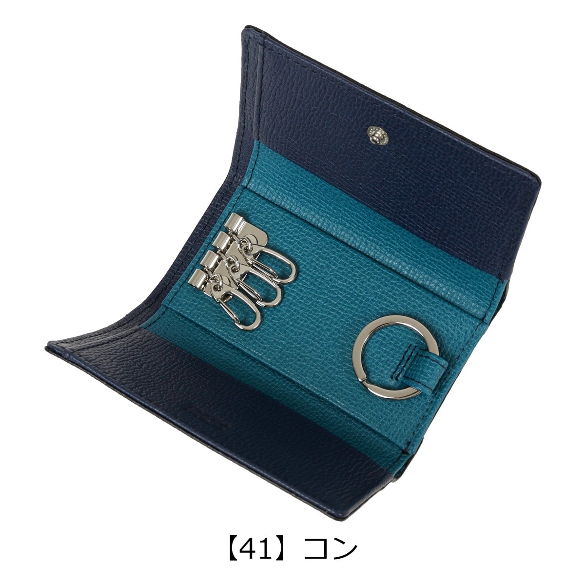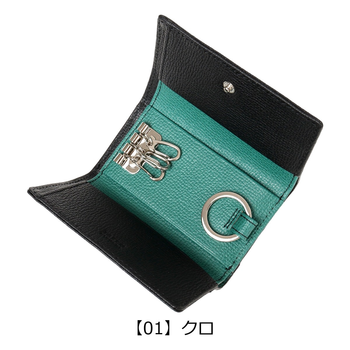 仕様:スナップボタン式開閉内側:3連キーレーン×1札入れ×1キーリング×1フリーポケット×2カードポケット×1背面:Lファスナー式小銭入れ×1