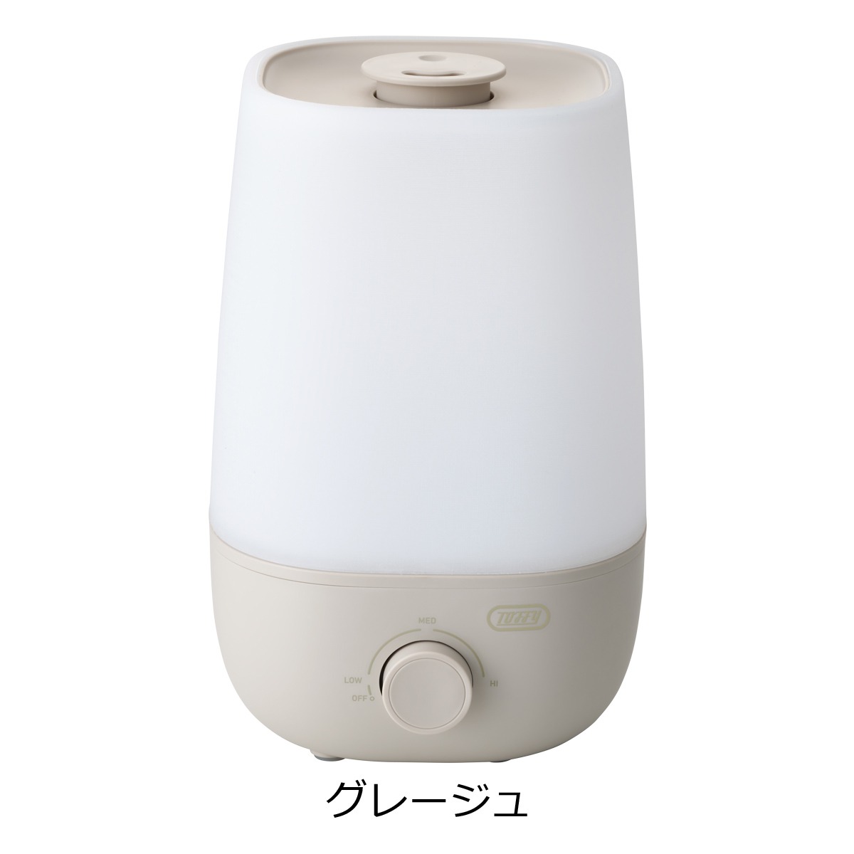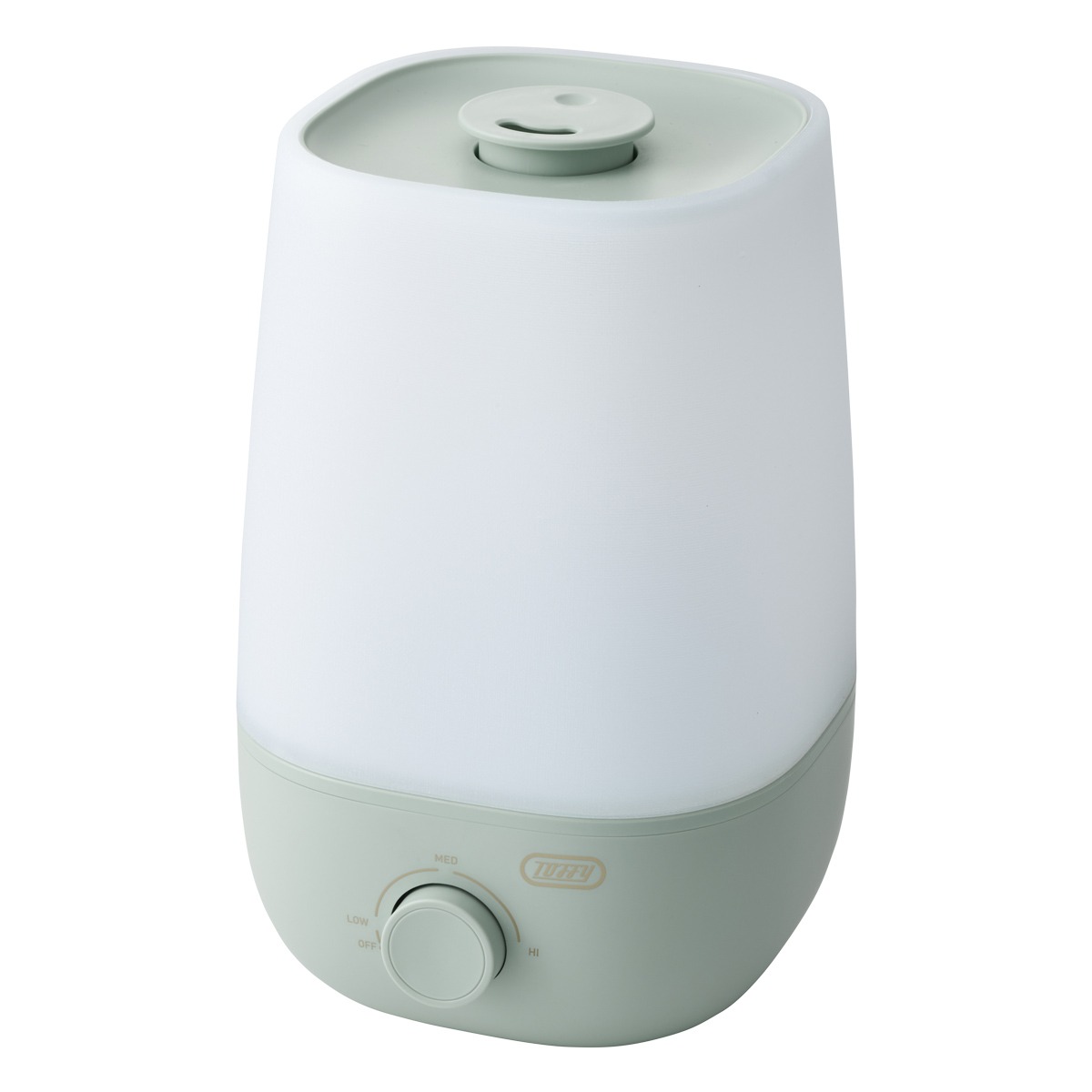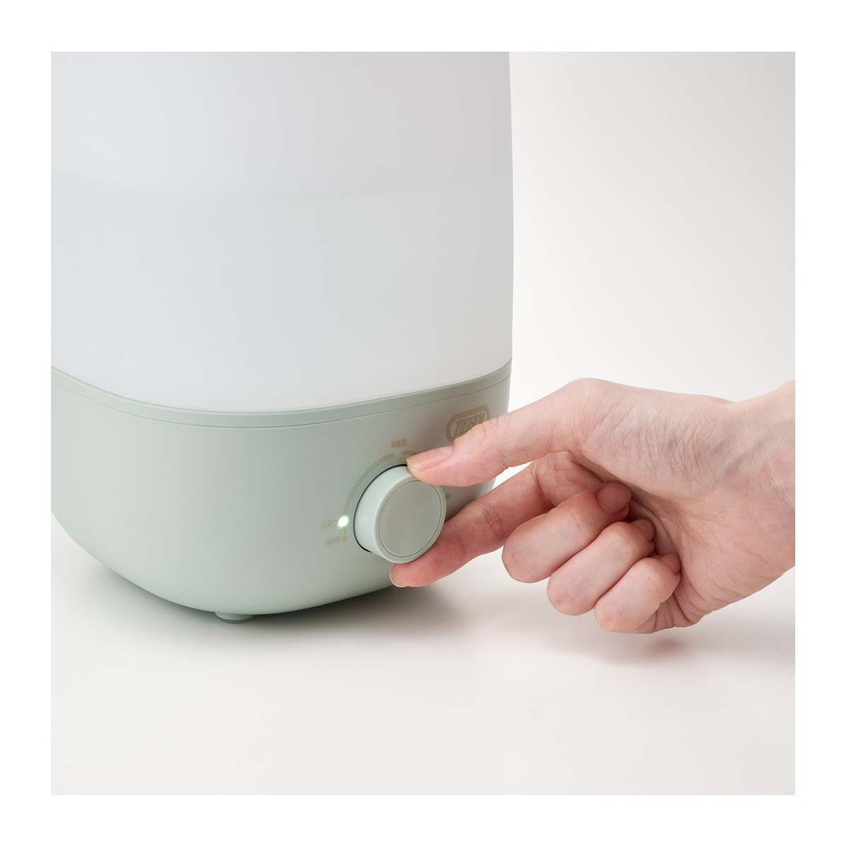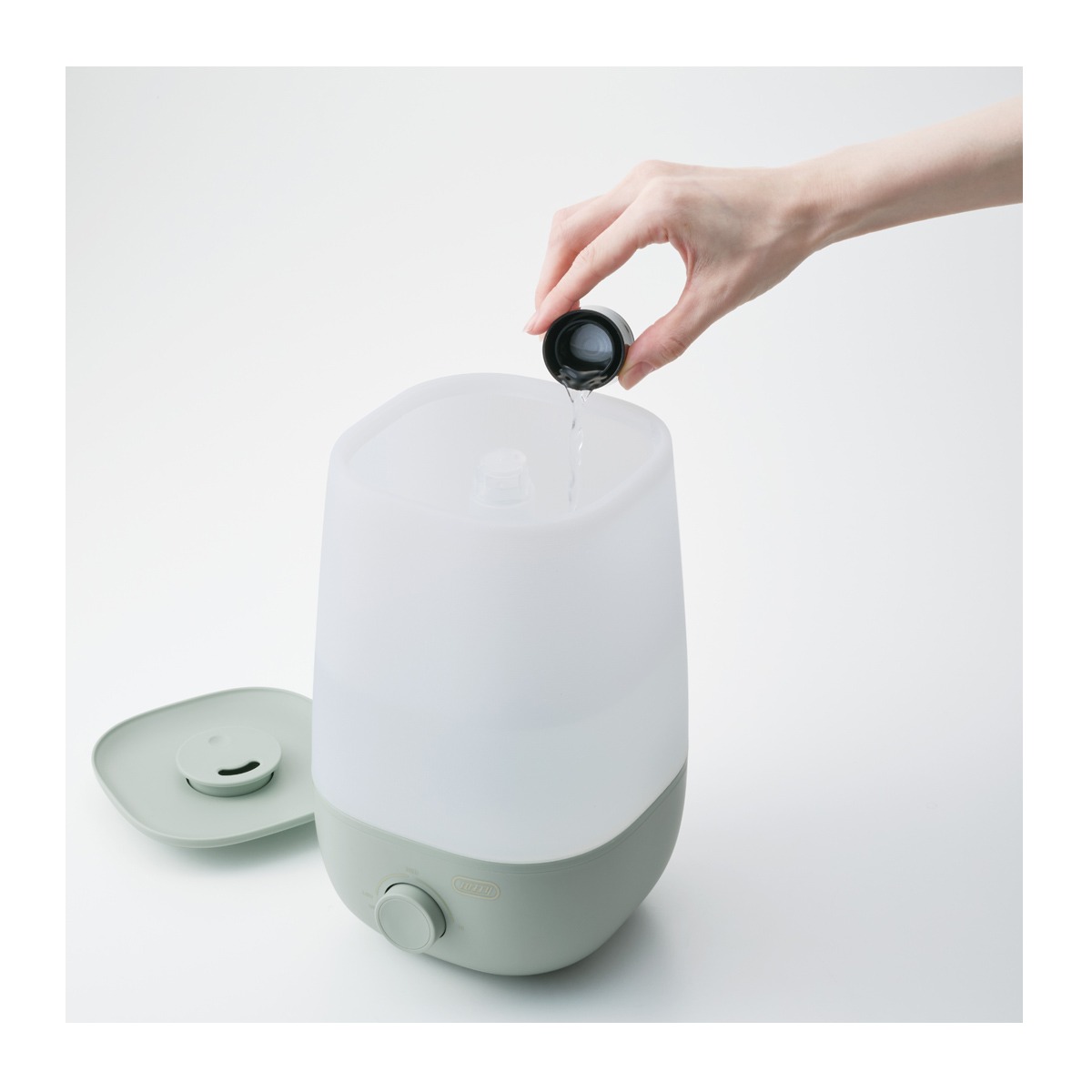 床置きでも卓上でも使えるちょうどいいサイズの加湿器。エッセンシャルオイルやアロマウォーター対応で、水タンクに滴下すればミストとともに香りを楽しむことができます。すりガラスのような水タンクから灯るライトが、お部屋をやさしく照らしながら空気を潤します。
