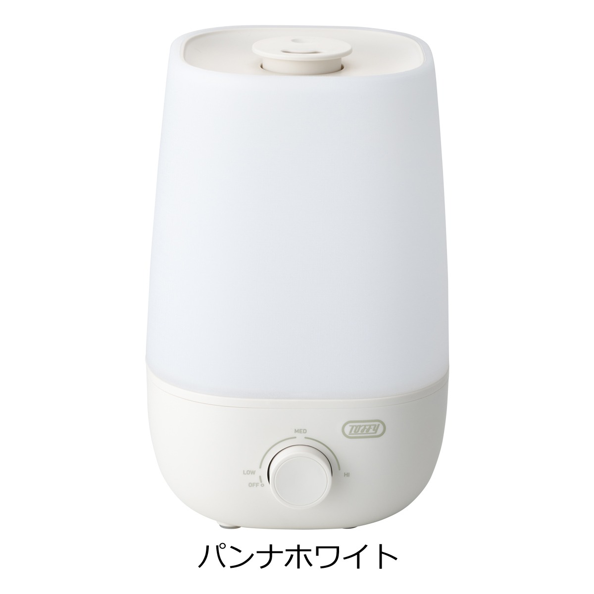 仕様:電源:5V 1.0A(USB接続)定格消費電力:4W水タンク容量:約450mL連続加湿時間:約6時間(オートパワーオフ)※環境により異なります。加湿能力:ふわふわリングモード・約5mL/h、連続モード・約40mL/h※環境により異なります。タイマー:OFF(6時間で停止)約1時間→約2時間→約4時間ライトモード:グラデーション変色加湿方式:超音波振動方式