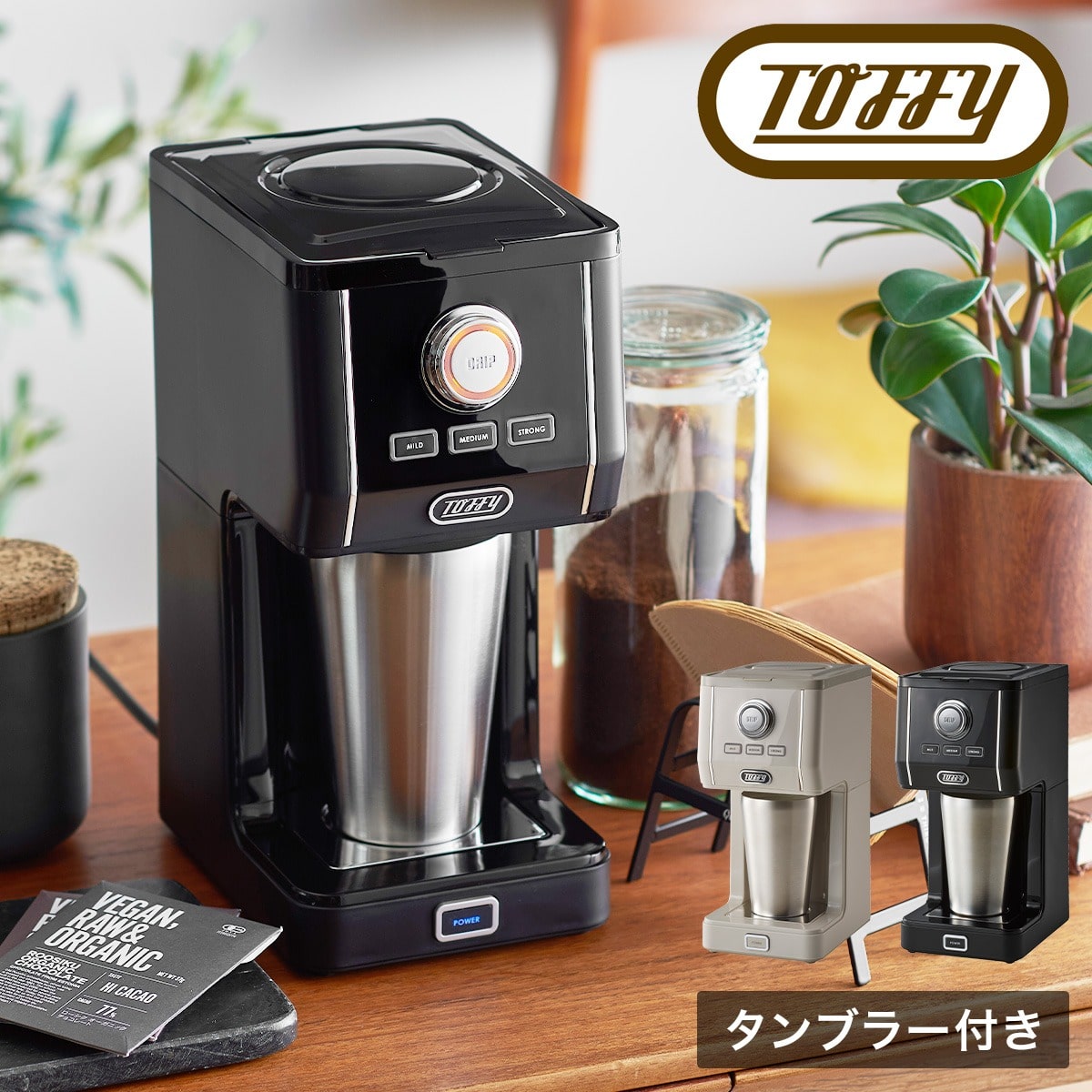 付属のタンブラーやお気に入りのマグに直接抽出できる便利なコーヒーメーカー。「間欠抽出」でハンドドリップのようにコーヒー粉を蒸らしながら抽出。マイルド、ミディアム、ストロングの3段階の味わいが選べます。