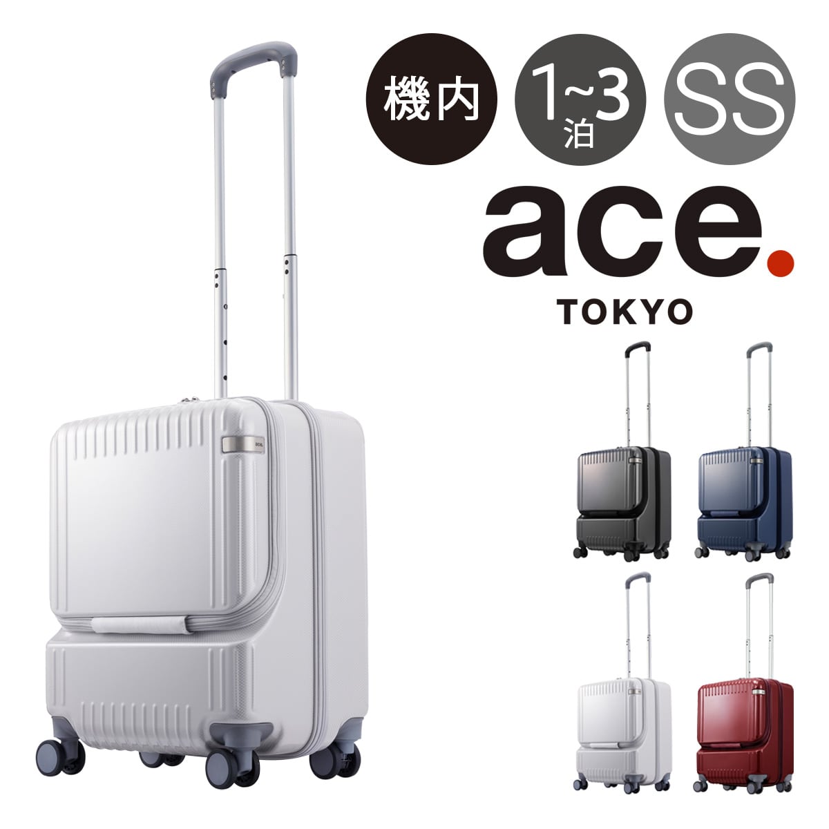 - > ace.TOKYO エーストーキョー スーツケース キャリーバッグ 機内持ち込み TSAロック 37L 50cm 3.2kg パリセイド3Z 06912 フロントオープン キャスターストッパー 抗菌生地 レッド