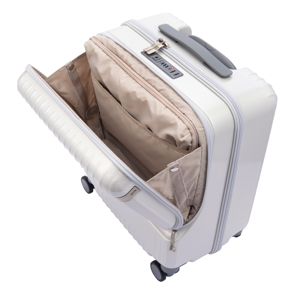 備考:※このスーツケースのTSAロックはダイヤルコンビネーションロックです。鍵穴は、TS職員が緊急の際に解錠して検査を行うためのものであり、差し込み式のキーは付属しておりません。