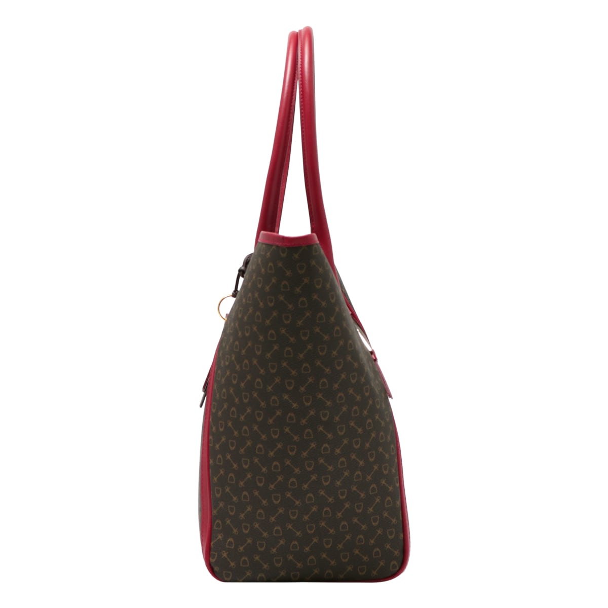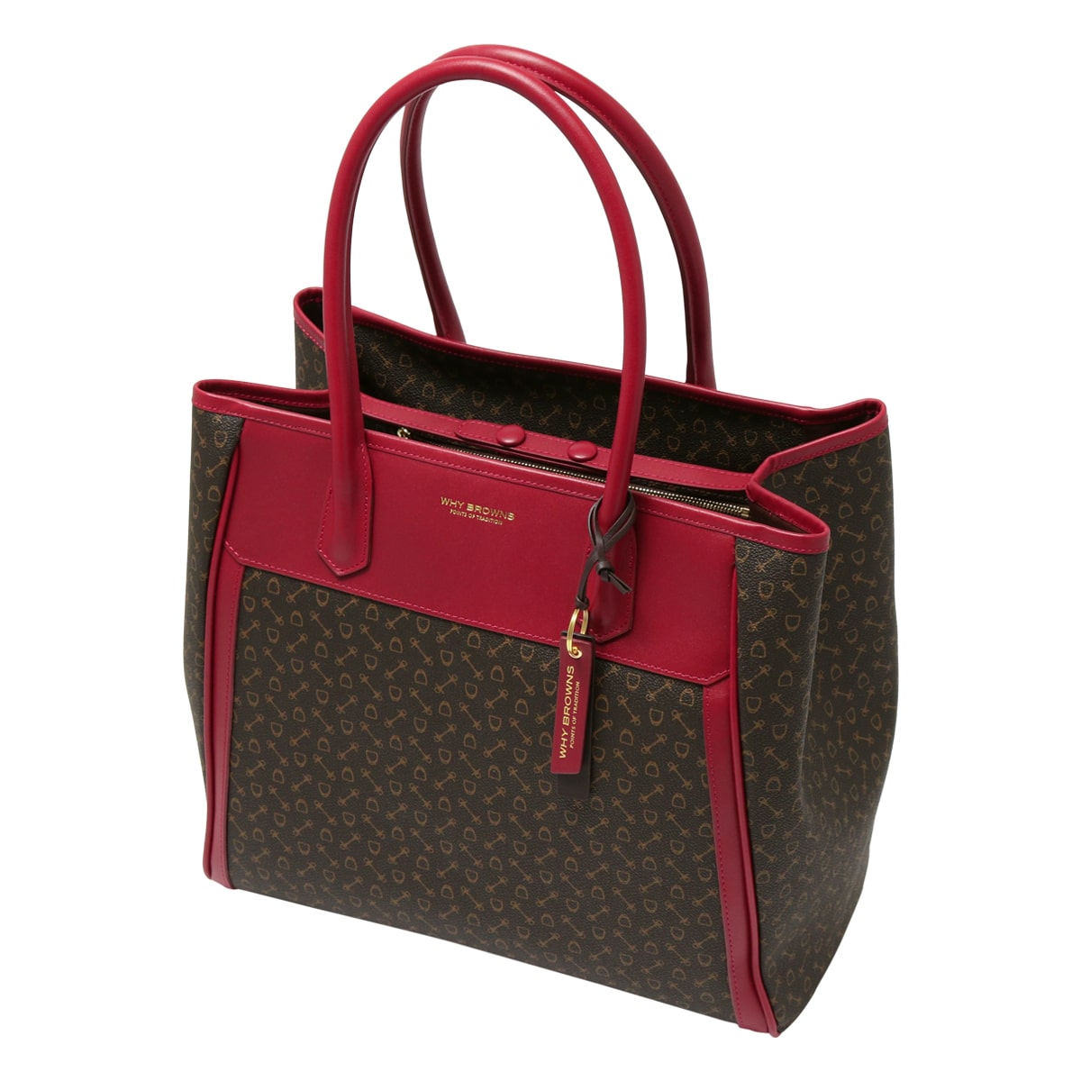 ブランドの顔であるBROWN PVCにカラフルなヌメ革をあわせたコンテンポラリーシリーズ。Whyのアーカイブを現代的にアップデートしたコレクションです。大き目サイズのモダントートバッグは、装いの主役になれる存在感。お仕事バッグやショートトリップまで使えるサイズ感です。中のホックを留めることで、マチを内側に折り畳んでフォルムを変えて使うことができます。